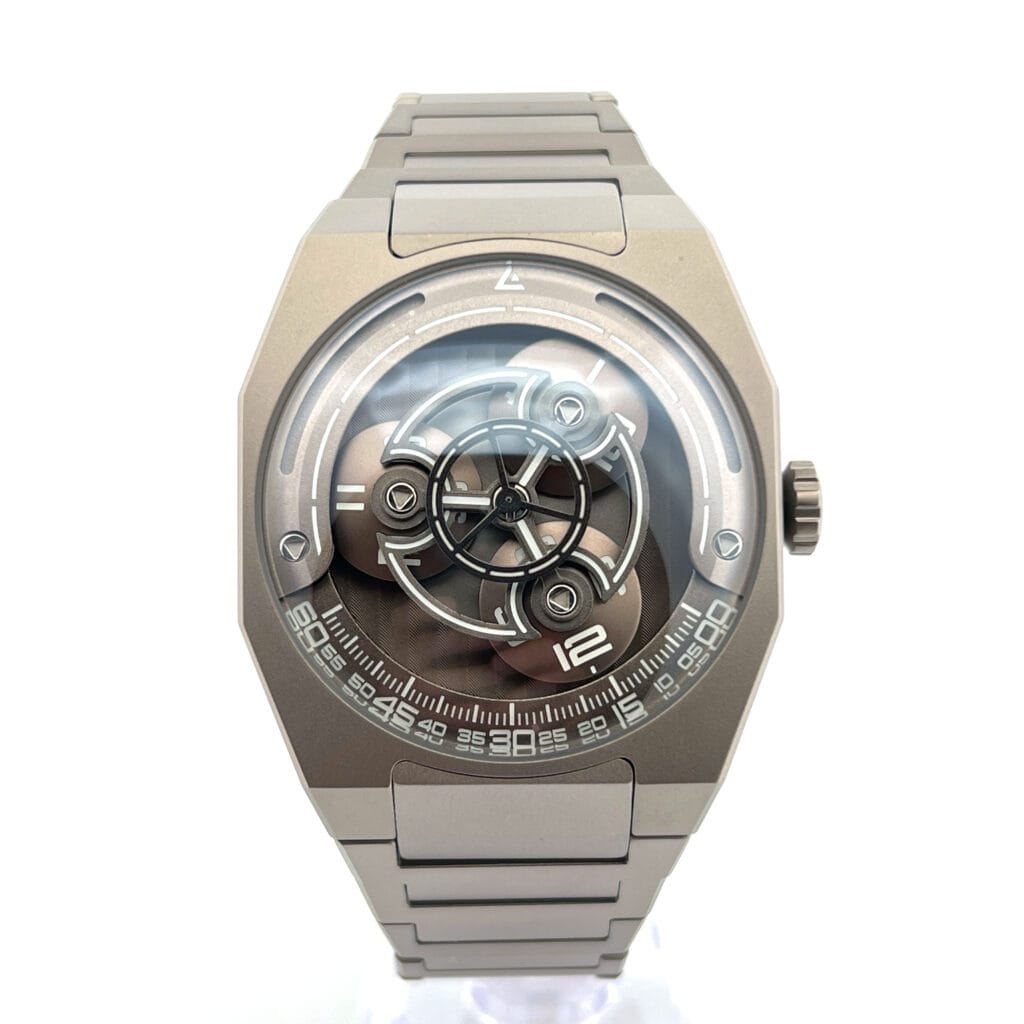 Encased in lightweight Grade 2 titanium, the 41mm case boasts a sleek 8.8mm profile, ensuring comfort without compromising presence. The double-domed sapphire crystal with anti-reflective coating offers clarity from every angle, while the exhibition case back reveals the intricate mechanics within.