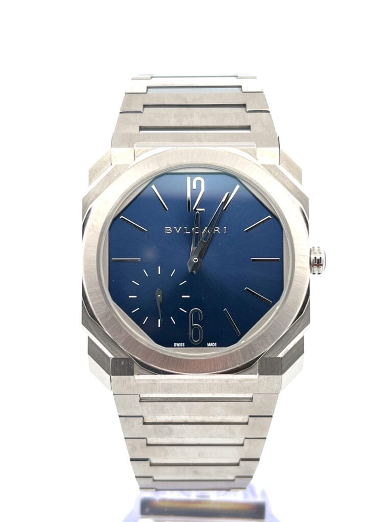 The Bulgari Octo Finissimo (Ref. 103431) is an architectural masterstroke—where horology, Italian design, and technical finesse converge in an ultra-thin profile that defies expectation. Known for its radical geometry and award-winning slimness, this reference marks a significant evolution of the Finissimo line: a stainless steel case with a bold satin-polished finish that adds new depth and versatility to its already iconic form.