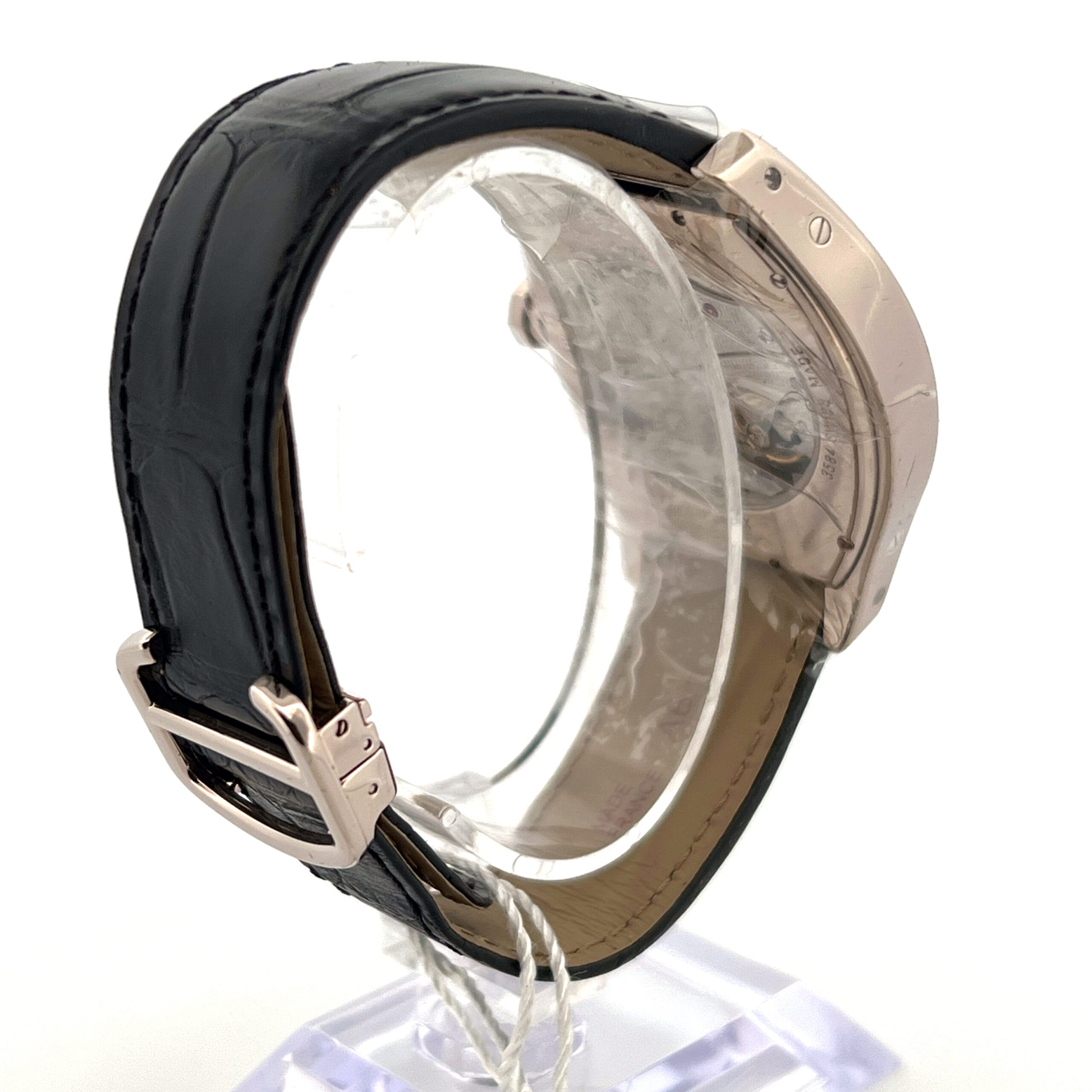 The polished 18k white gold case, with its distinctive rounded tonneau shape, exemplifies understated elegance while offering a comfortable fit on the wrist. At 43mm x 35mm, the XL size makes a bold yet sophisticated statement, suitable for both formal and refined everyday wear.