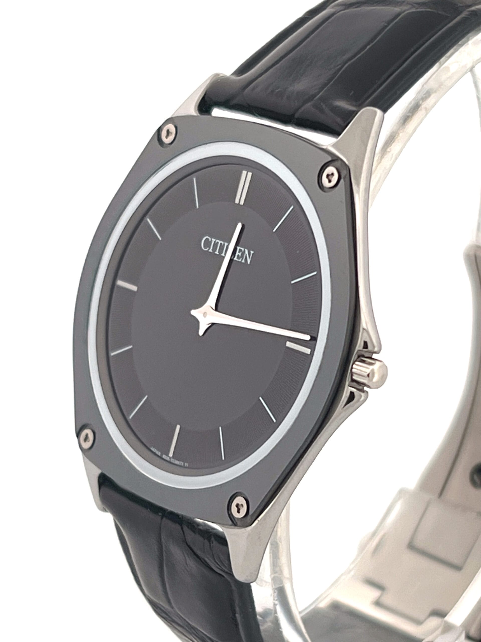 This reference represents a significant technical achievement from Citizen and its long-standing philosophy of combining practicality with advanced engineering. The Eco-Drive One series was created to demonstrate how solar-powered quartz technology could be pushed to an extreme level of refinement, resulting in one of the thinnest light-powered watches ever produced. Instead of focusing solely on thinness as a novelty, Citizen approached the design holistically, engineering a movement and case construction that maintain structural integrity while delivering exceptional efficiency and reliability. The AR5044-03E reflects the brand’s broader commitment to innovation that prioritises usability, durability, and sustainability, reinforcing Citizen’s reputation as a pioneer in solar watchmaking.