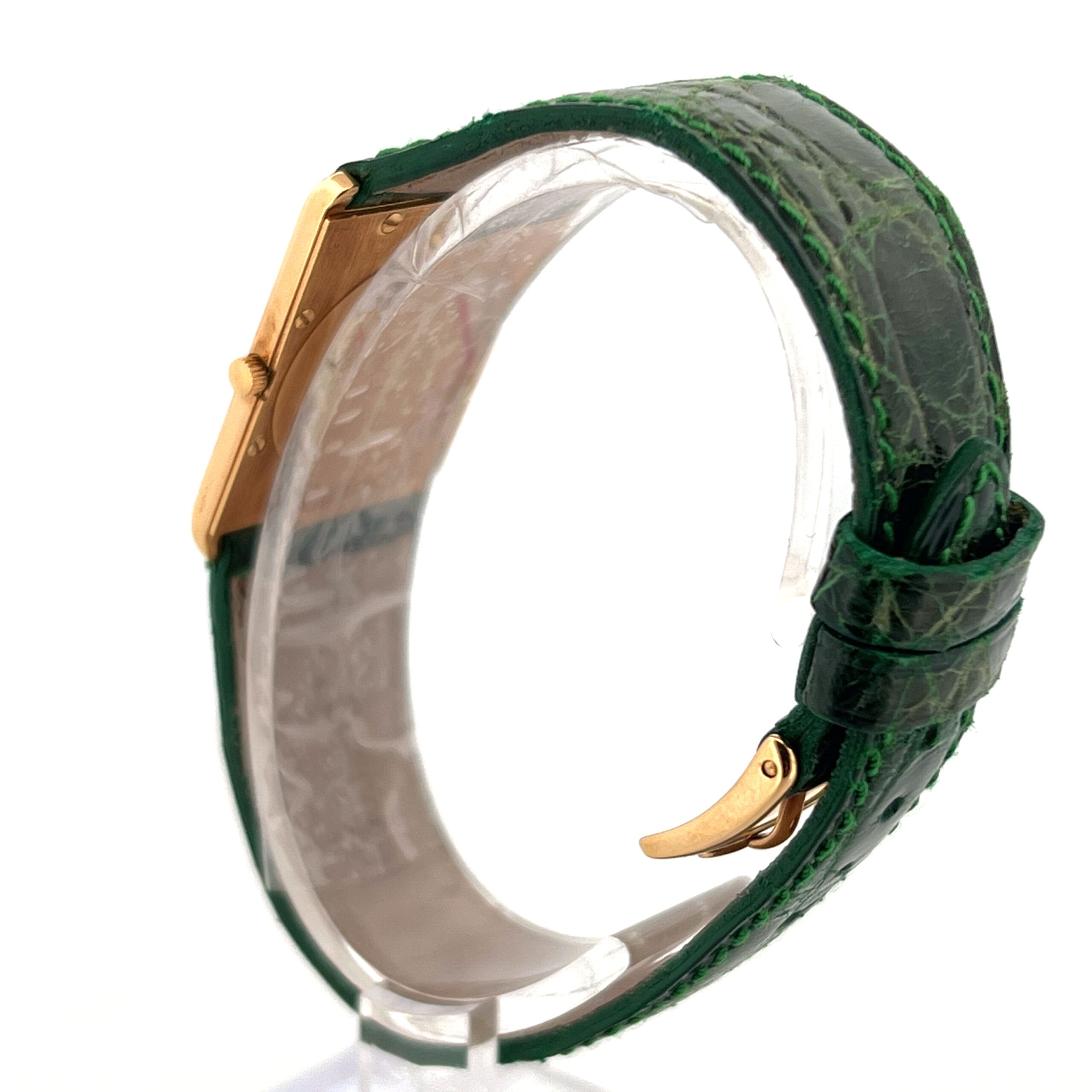 Crafted in 18k yellow gold, the case exudes timeless sophistication while maintaining the ultra-thin design that defined the Delirium line. The watch is further elevated by the addition of brilliant-cut diamonds set along the bezel, adding a luxurious sparkle to its minimalist form.
