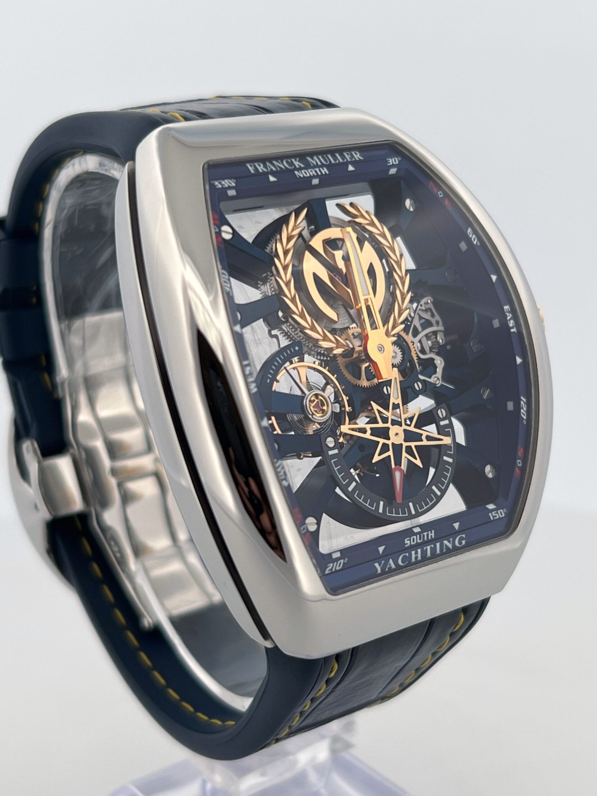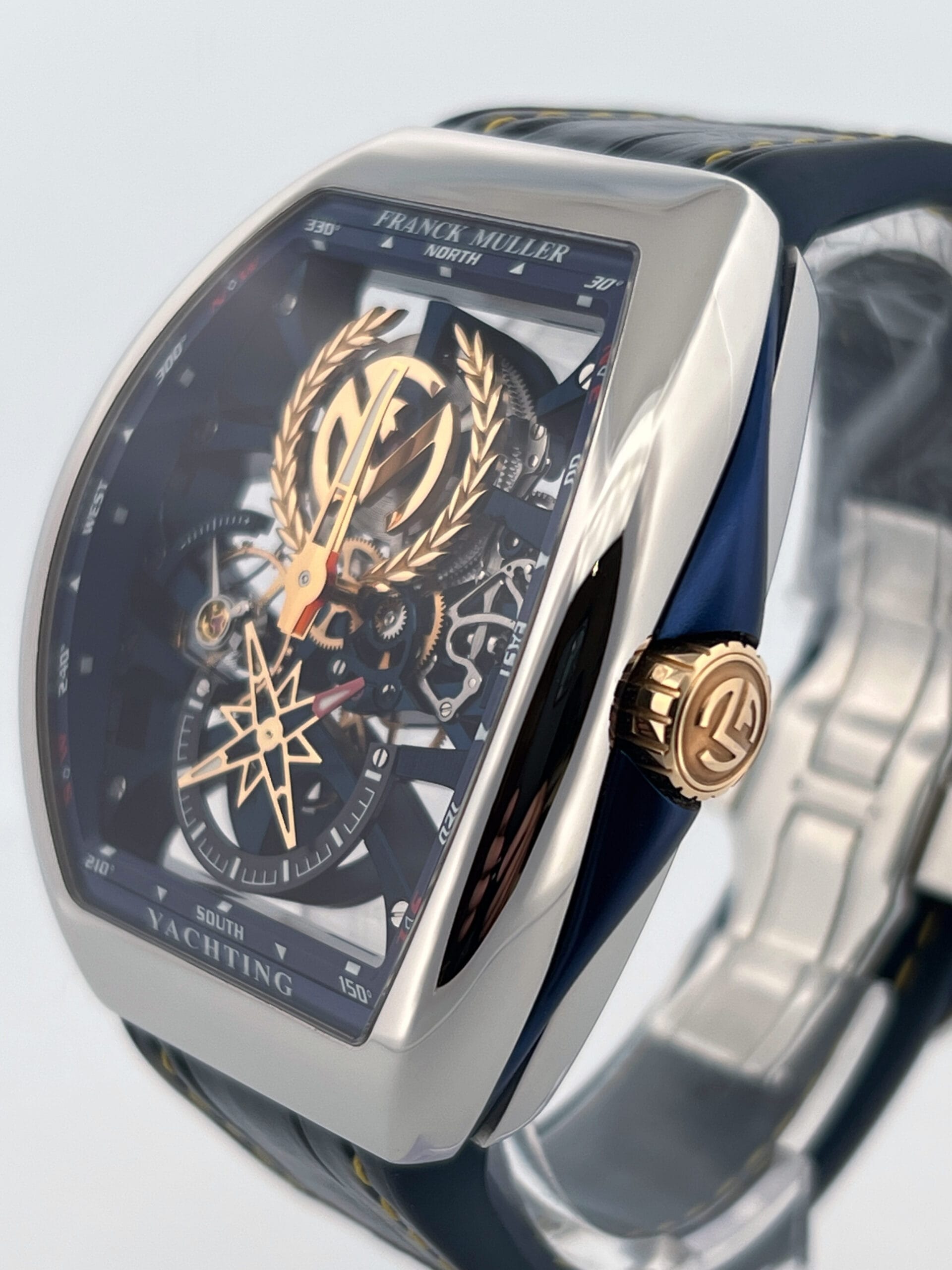 The Franck Muller Vanguard Yachting Anchor Skeleton in stainless steel is where the boldness of contemporary architecture meets the romance of the sea. It doesn’t just tell time—it charts a course.