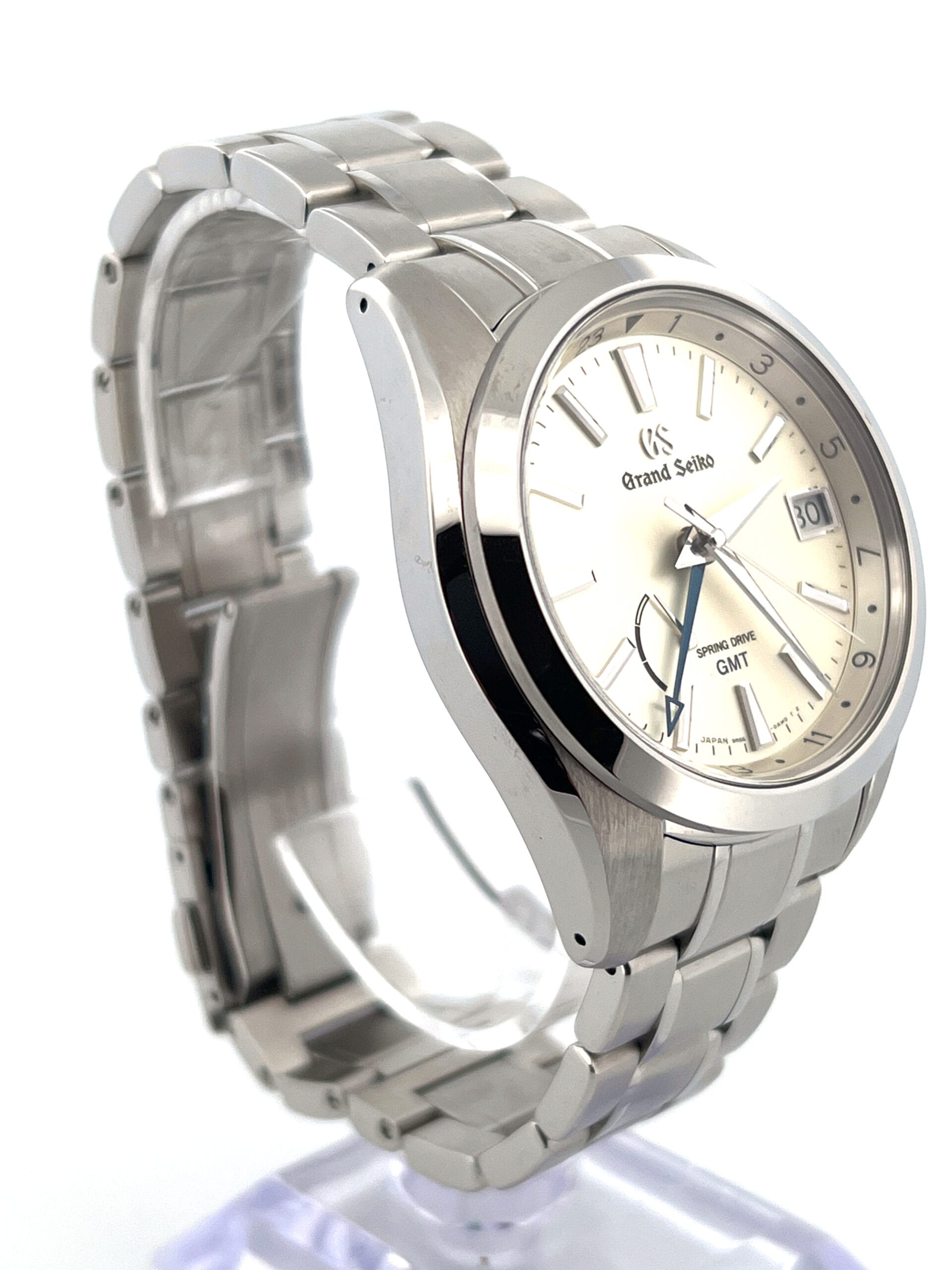 Inside beats the Spring Drive calibre 9R66, which merges quartz-level precision (±1 sec/day, ±15 sec/month) with the soul of mechanical watchmaking. The movement offers 72 hours of power reserve, an independently adjustable GMT hand, and smooth-sweeping seconds — all protected by 100 m of water resistance and a screw-down crown.