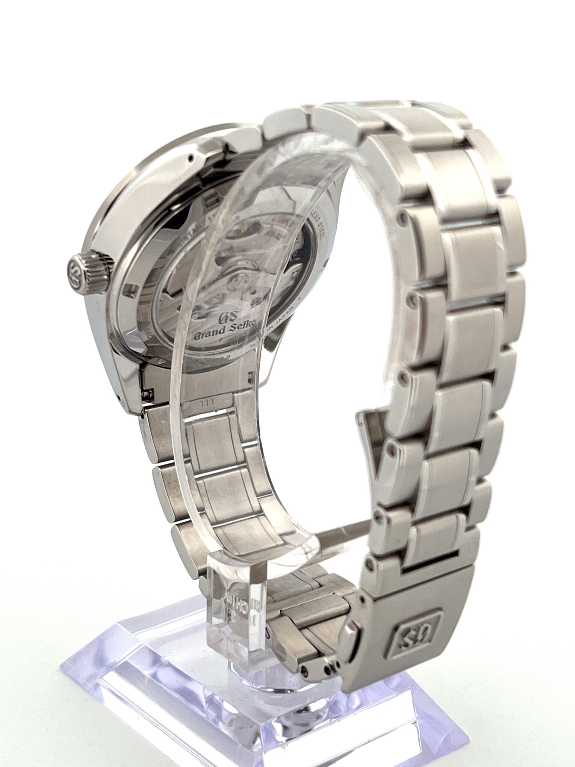 The Grand Seiko SBGE205 embodies the brand’s commitment to elegant proportions and technical innovation, presented here in a refined 38.5 mm stainless-steel case with Zaratsu-polished facets that reflect Grand Seiko’s distinctive 44GS-inspired silhouette. Its compact size enhances its versatility on the wrist, offering a balanced presence suitable for both daily wear and formal settings.
