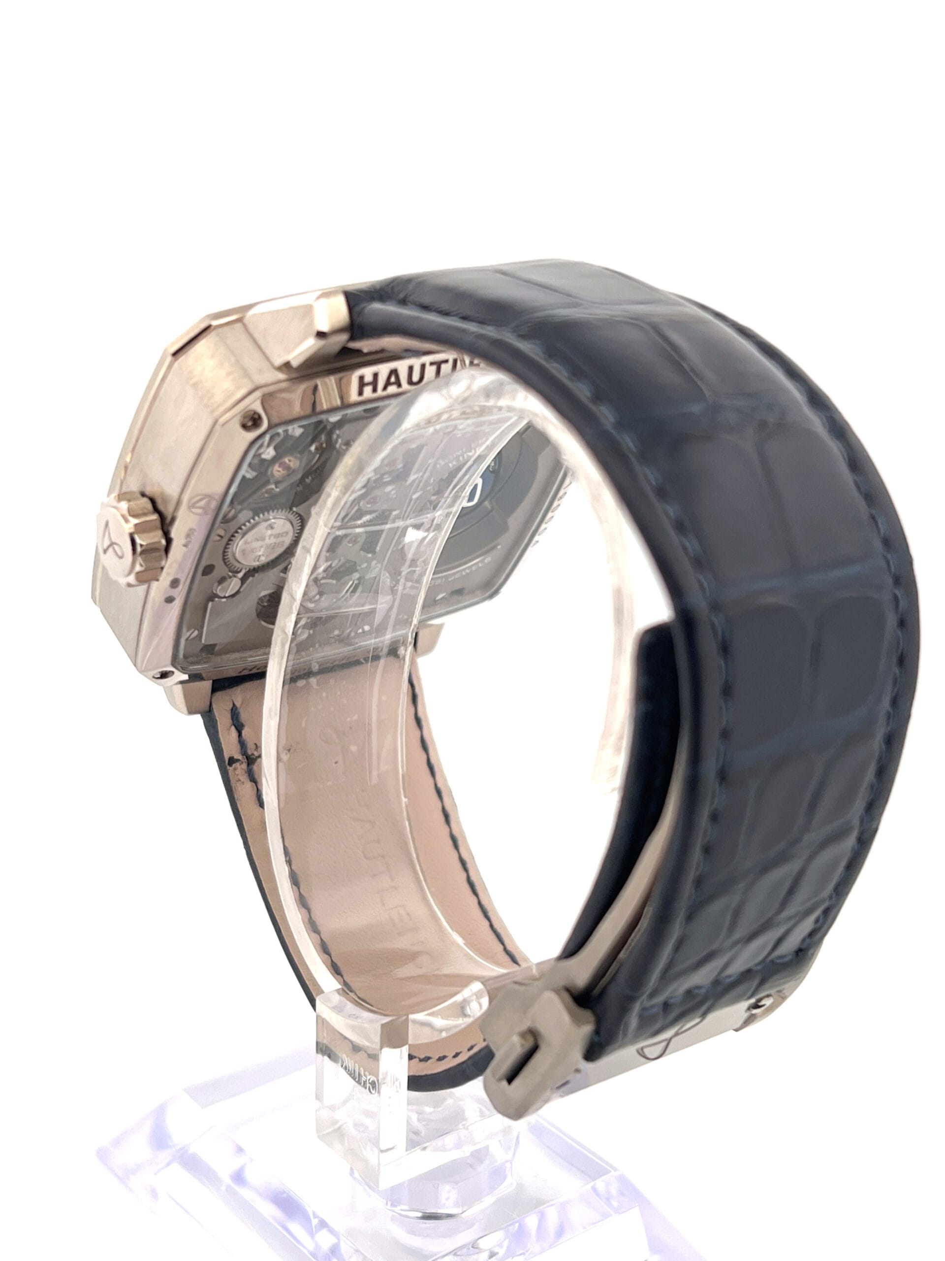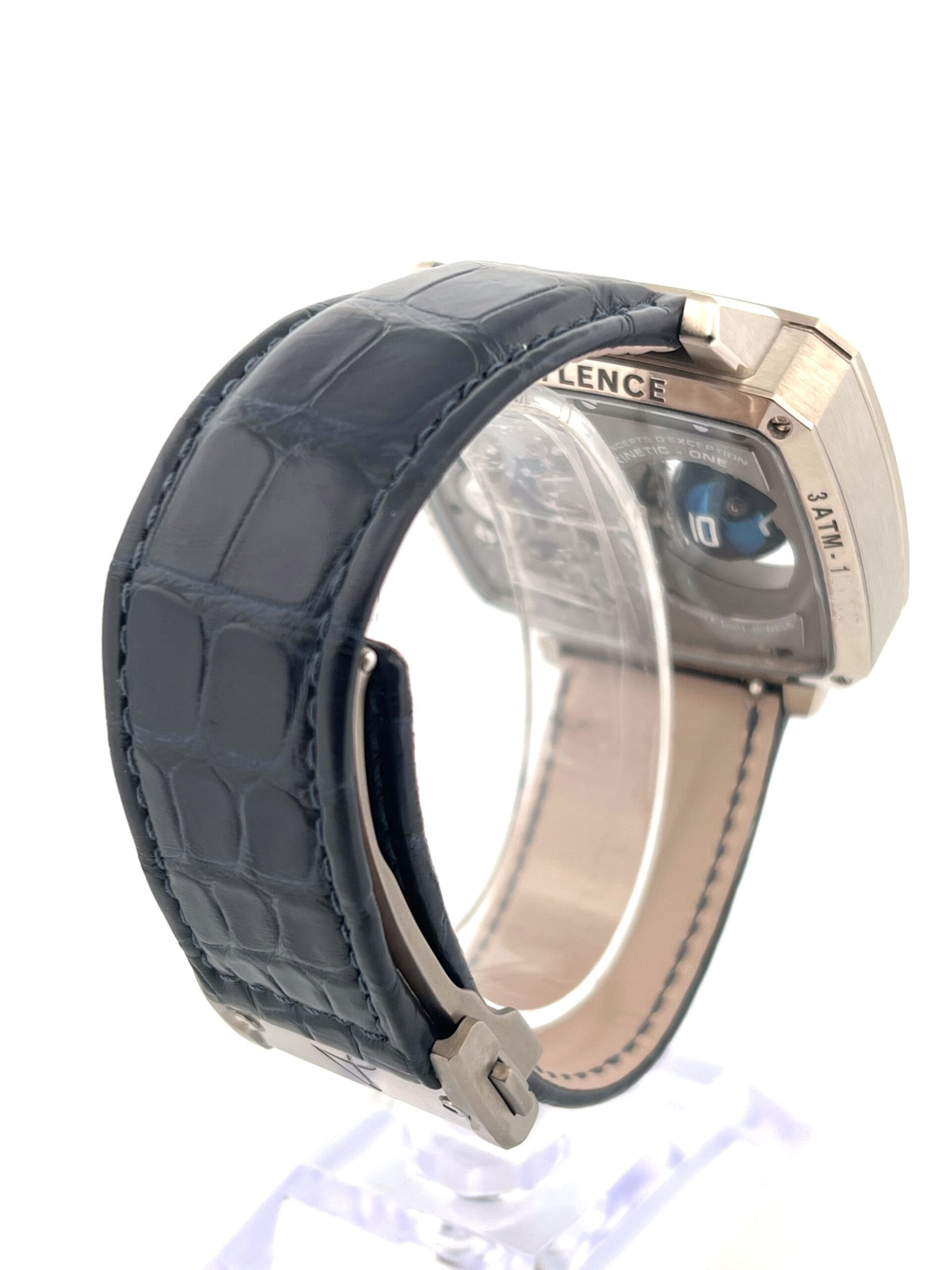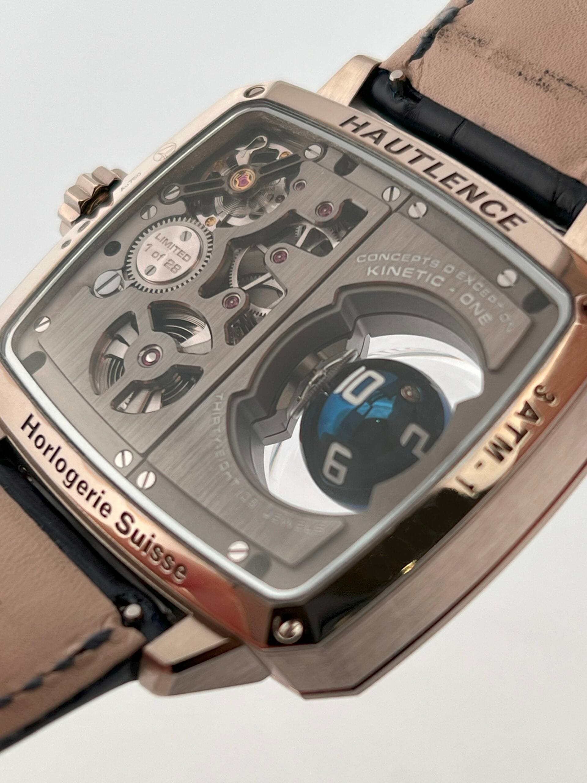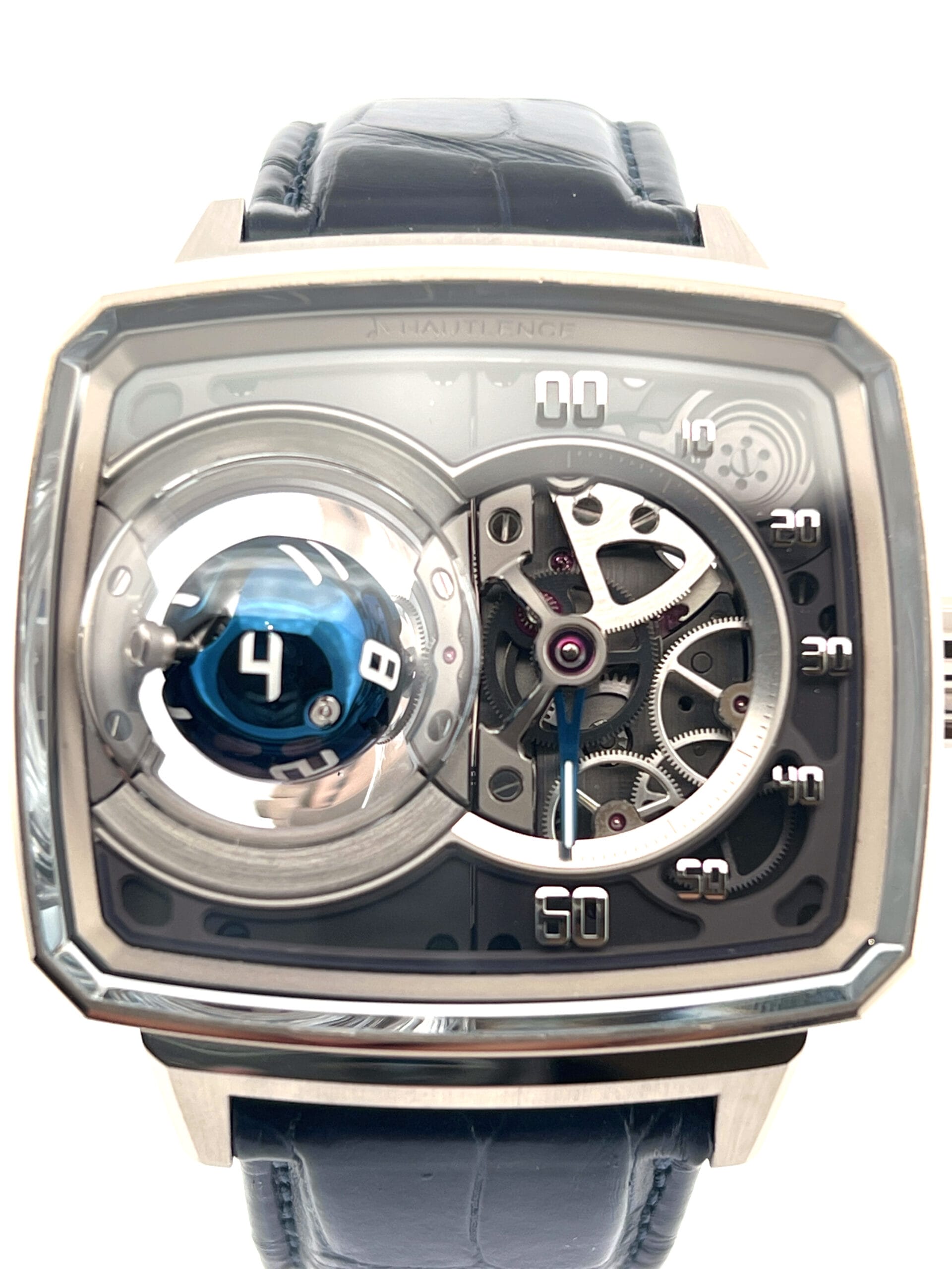 In 2023, Hautlence once again redefined the boundaries of mechanical watchmaking with the launch of the Sphere Series 1, a breathtaking limited edition of just 28 pieces that transforms timekeeping into kinetic sculpture. Encased in the brand’s signature TV-shaped stainless steel case, the watch immediately commands attention—not with traditional complications, but with an avant-garde display that appears to defy logic. On the left side of the dial, a blue PVD-coated titanium sphere floats as if suspended in space, its white Super‑LumiNova numerals rotating on three axes every hour to reveal the correct hour with mesmerizing precision. This seemingly magical movement is no trick; it is powered by an intricate system of conical gears and crossed spindles, engineered to execute the sphere’s hypnotic pirouette with mathematical accuracy.