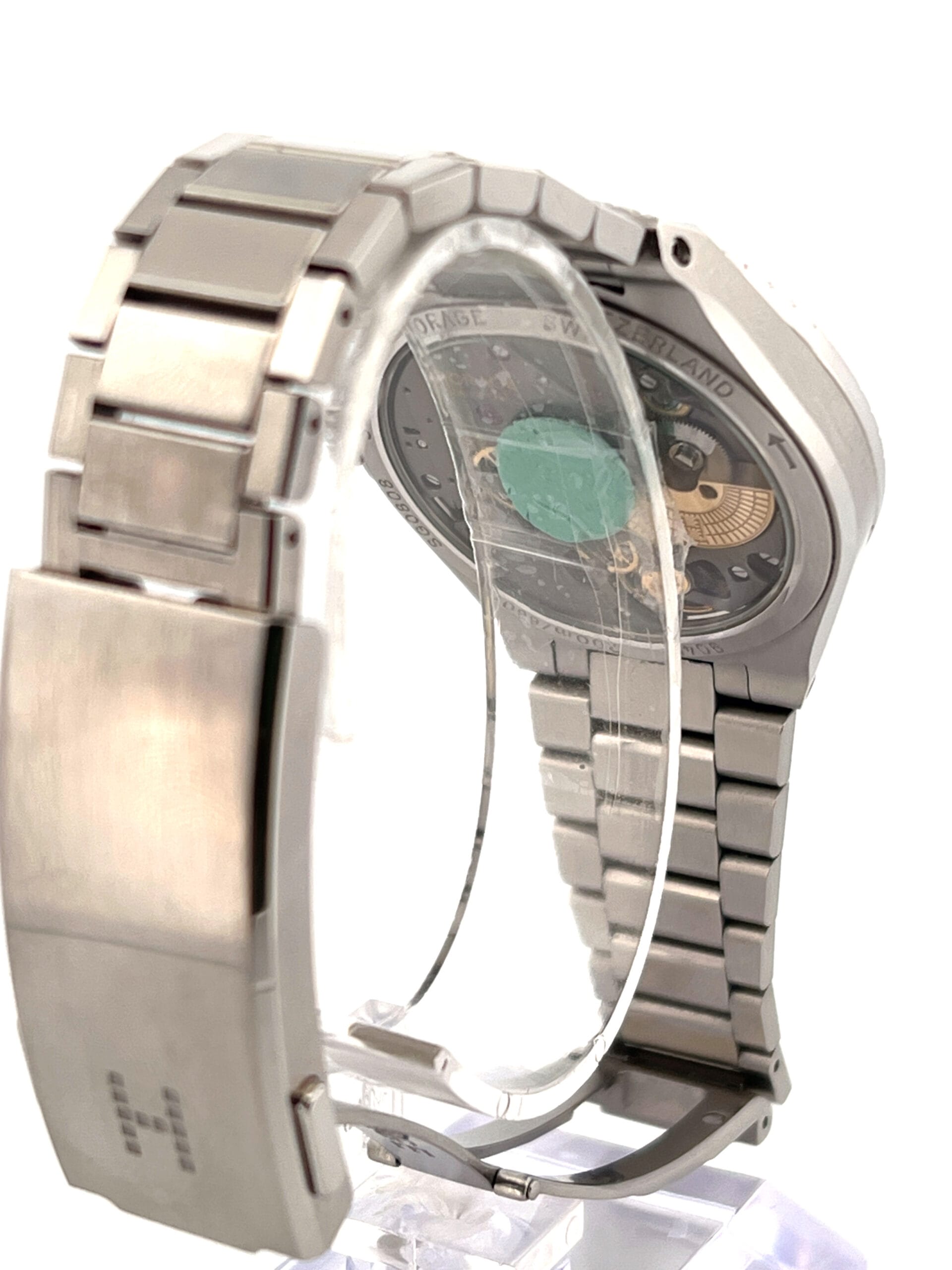 Beneath the surface lies Horage’s in-house K2 calibre — a micro-rotor automatic movement just 3.6 mm thick, boasting 72 hours of power reserve, a silicon hairspring and escapement, and COSC chronometer certification. The movement offers not only precision but also character, featuring a “jump-hour” function that allows the hour hand to be adjusted independently — a thoughtful nod to the brand’s earlier GMT innovations. This mechanical depth is matched by practical performance: 200 meters of water resistance, an integrated bracelet in tapering 904L steel with a micro-adjust clasp, and a discreet date window with a black background to preserve dial harmony.