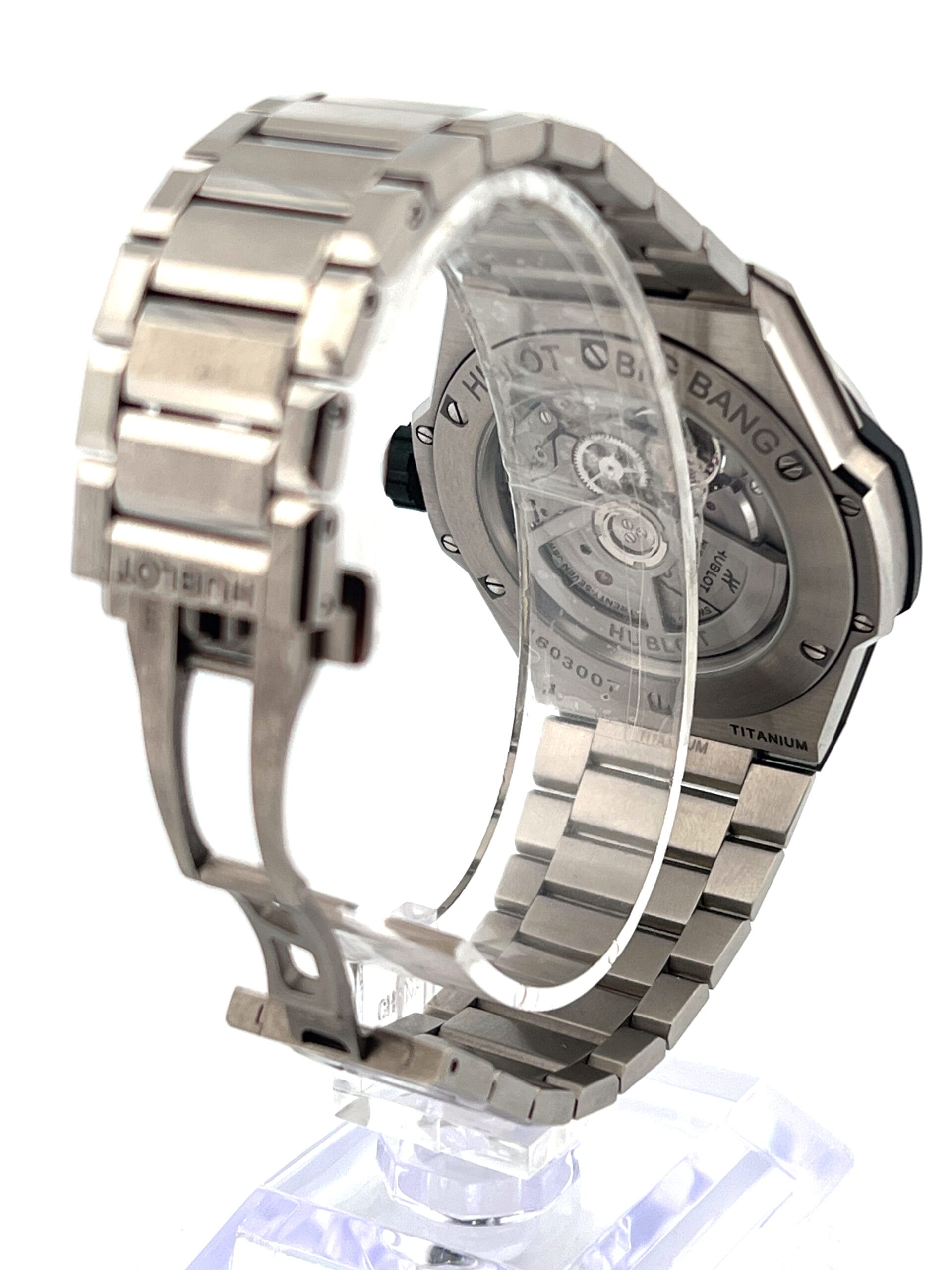 Remarks – From an ownership perspective, this 2023 example offers collectors a modern Big Bang experience that feels more versatile than earlier strap-based versions. The integrated bracelet improves both comfort and balance, making it easier to wear regularly while still retaining the strong visual identity associated with the Big Bang line. Presented here in honest condition and as a full set, it represents a well-kept example of Hublot’s more refined contemporary direction. For collectors who appreciate modern watchmaking, advanced materials, and bold yet cohesive design, the Big Bang Integrated Time Only offers a confident and distinctive presence within a collection.