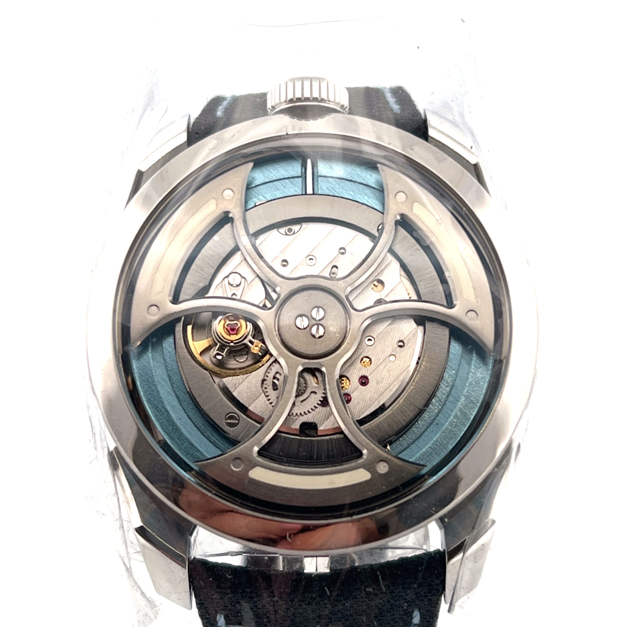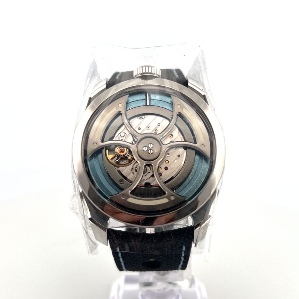 Worn on a perforated leather strap with blue stitching, the M.A.D.1S Blue is not just a watch—it’s kinetic art on the wrist, blending avant-garde aesthetics with genuine horological innovation.