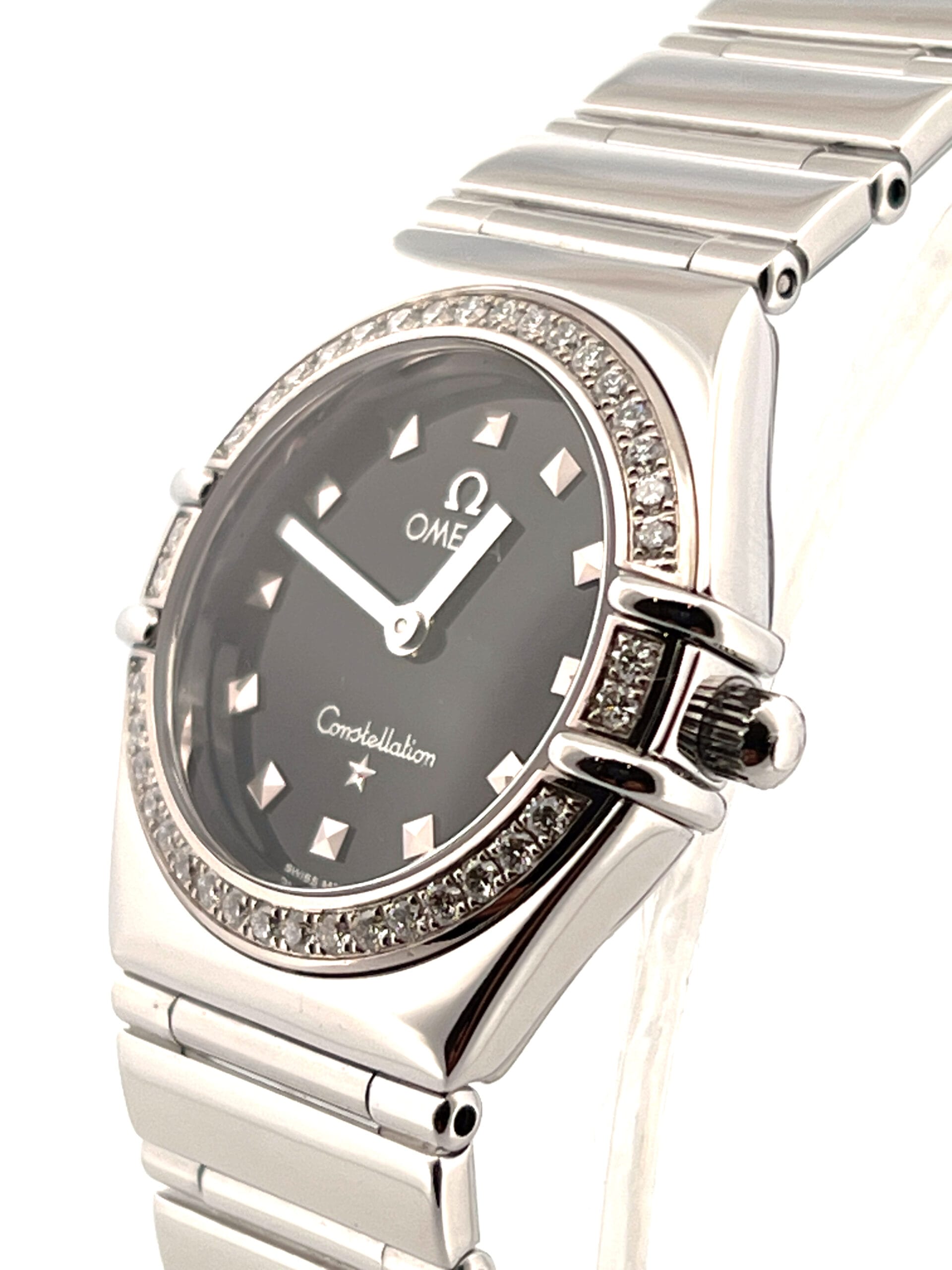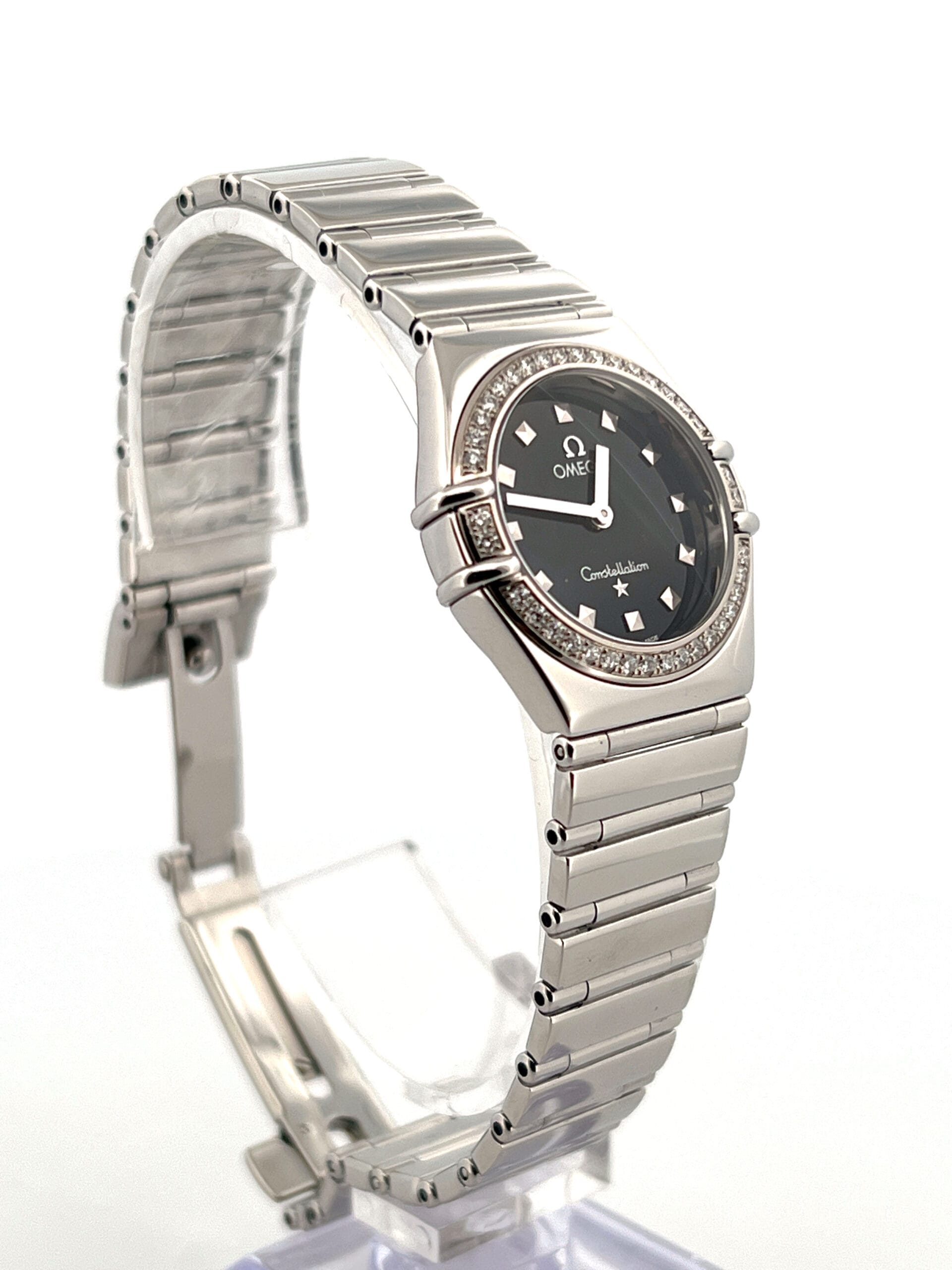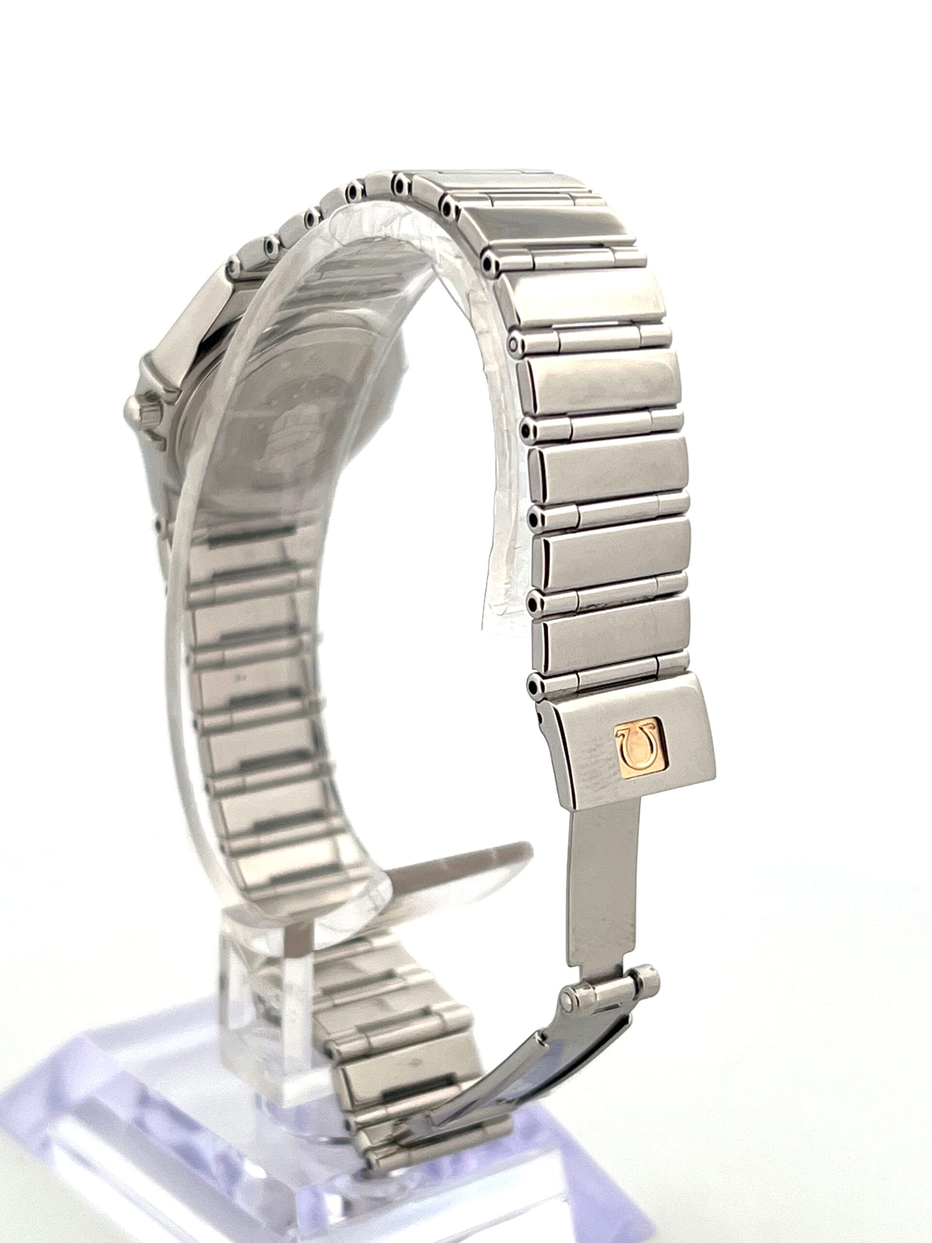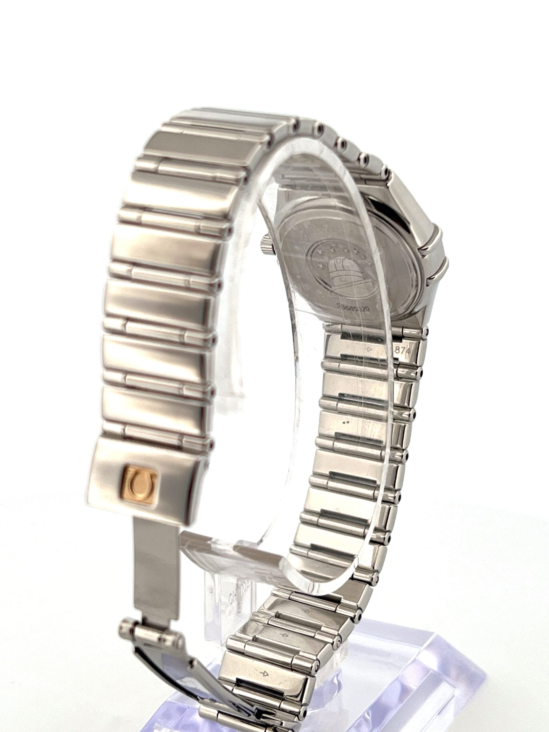 Introduced in the early 2000s, the “My Choice” edition elevated Omega’s classic Constellation design—recognizable for its integrated brushed-steel bracelet and iconic “claws” on the bezel—by dressing it in diamonds and grace. The 25.5 mm stainless-steel case houses a flawless factory-set diamond bezel, comprised of 38 VVS-quality, Top Wesselton diamonds, totaling approximately 0.40 carats.
