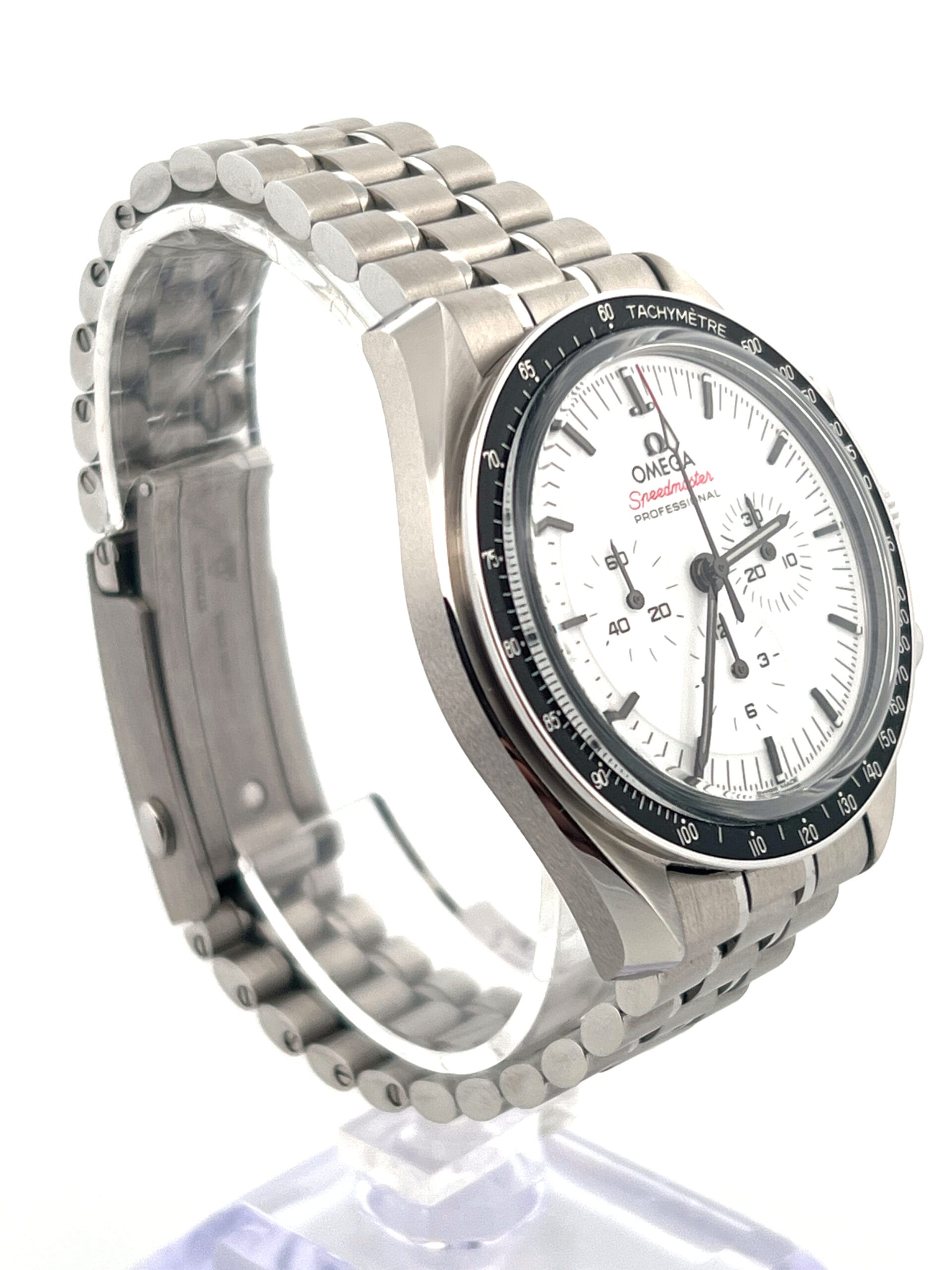 Remarks – From an ownership perspective, this example offers the appeal of a modern Speedmaster that feels both collectible and highly wearable. Being dated 2024, complete, and in mint condition, it presents itself as a strong example for collectors who want the reassurance of the latest generation Moonwatch while enjoying a configuration that stands apart from the traditional black dial standard. It remains versatile enough for daily wear while carrying enough individuality to hold interest within a collection. For collectors who appreciate the Moonwatch not only for its history but for how it continues to evolve thoughtfully, this white dial reference represents a confident and well-balanced modern chapter.