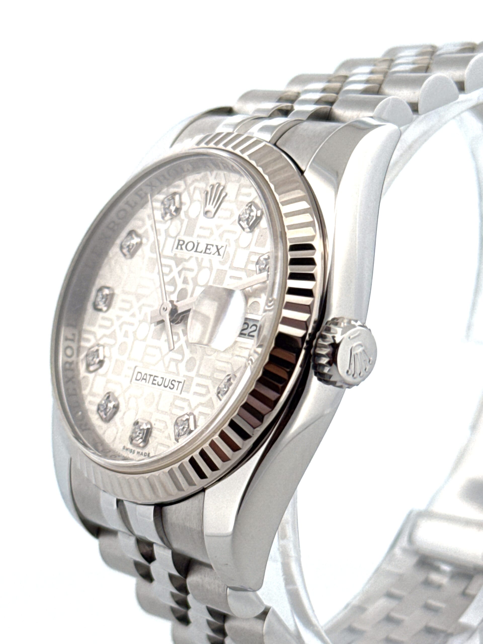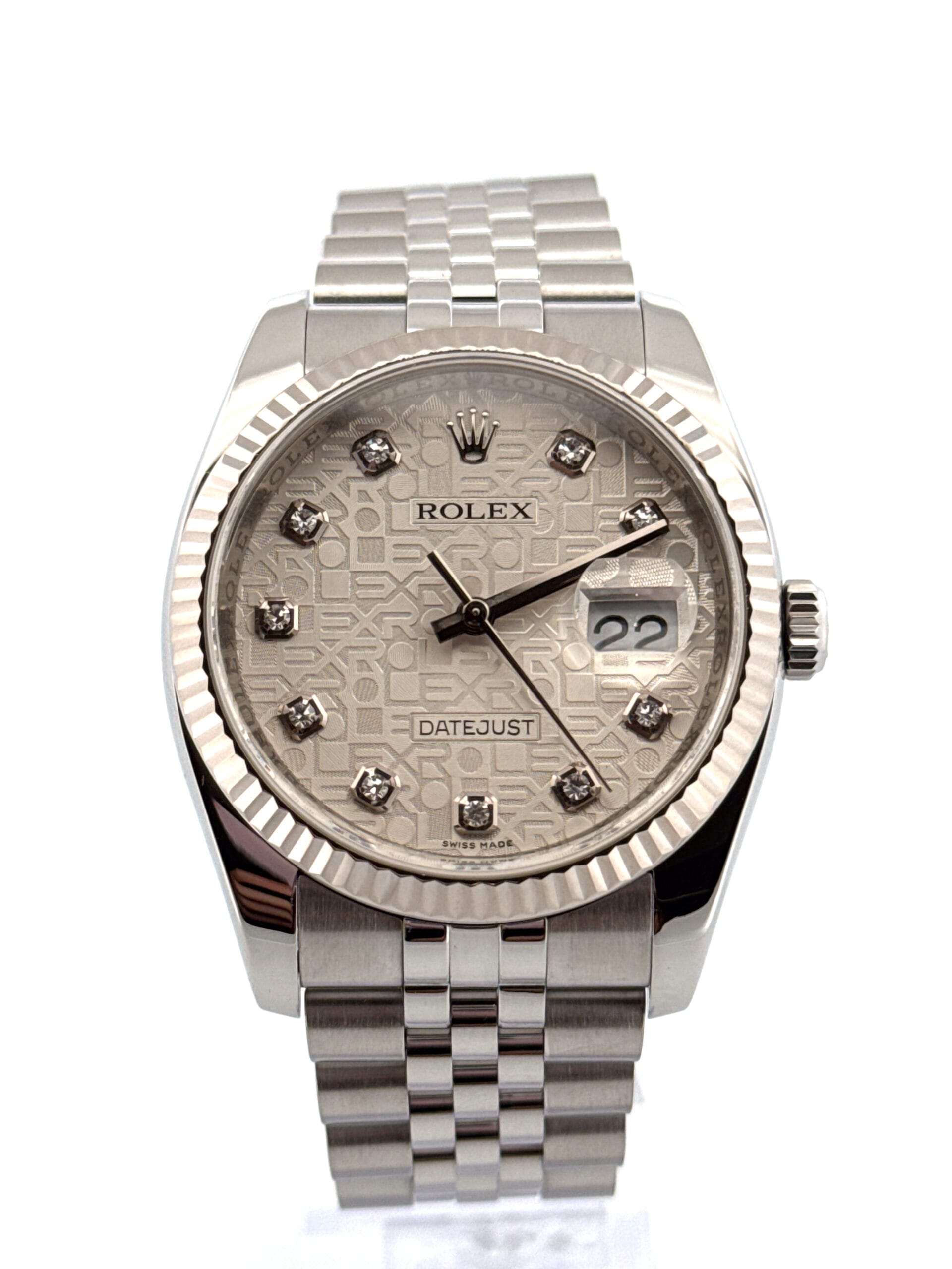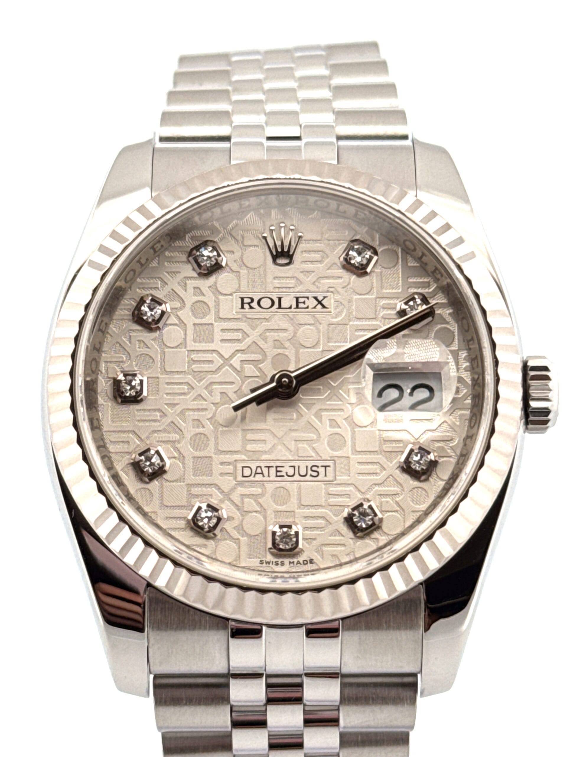 The Rolex Datejust 36 (Ref. 116234) with the “Computer” dial is a refined fusion of timeless elegance and modern flair—an expression of Rolex’s mastery in both design and detail. At a glance, it is a classic Datejust: dignified, balanced, and instantly recognizable. But look closer, and the intricate dial reveals a far more contemporary character.