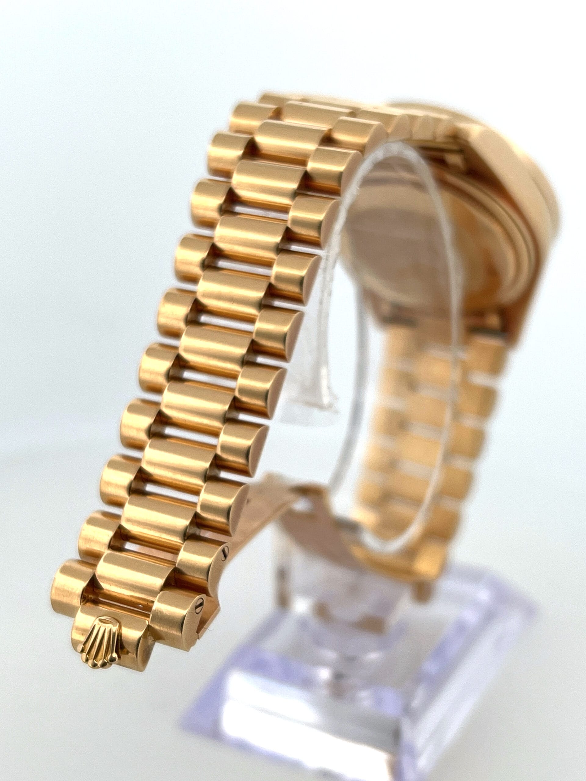 The reference 18038 was introduced in the late 1970s as the updated, quick-set successor to the 1803. It kept the iconic Day-Date design but brought practical upgrades, including the improved 3055 movement and a stronger sapphire crystal. But the real highlight of this particular piece is the factory gemstone configuration.