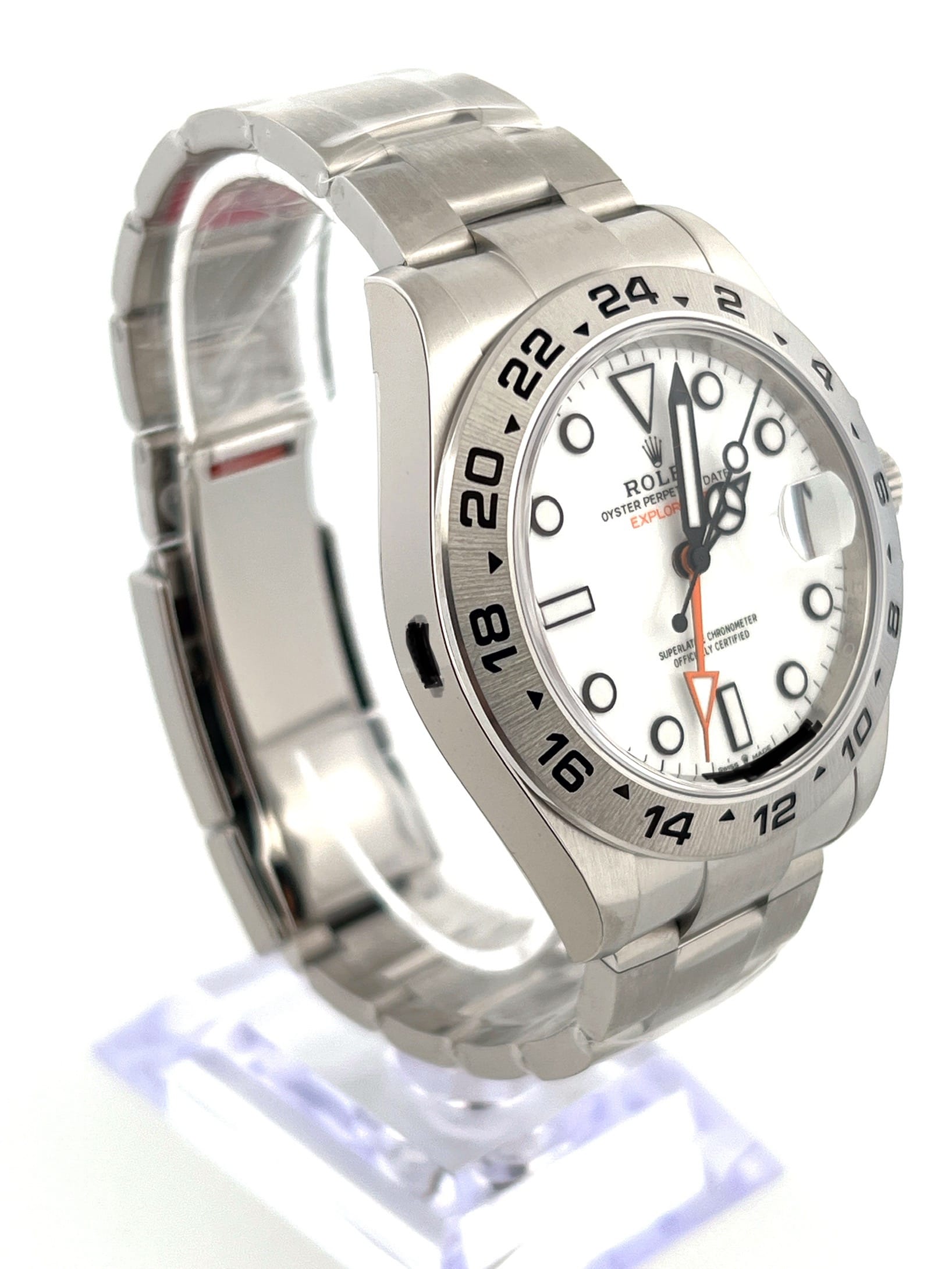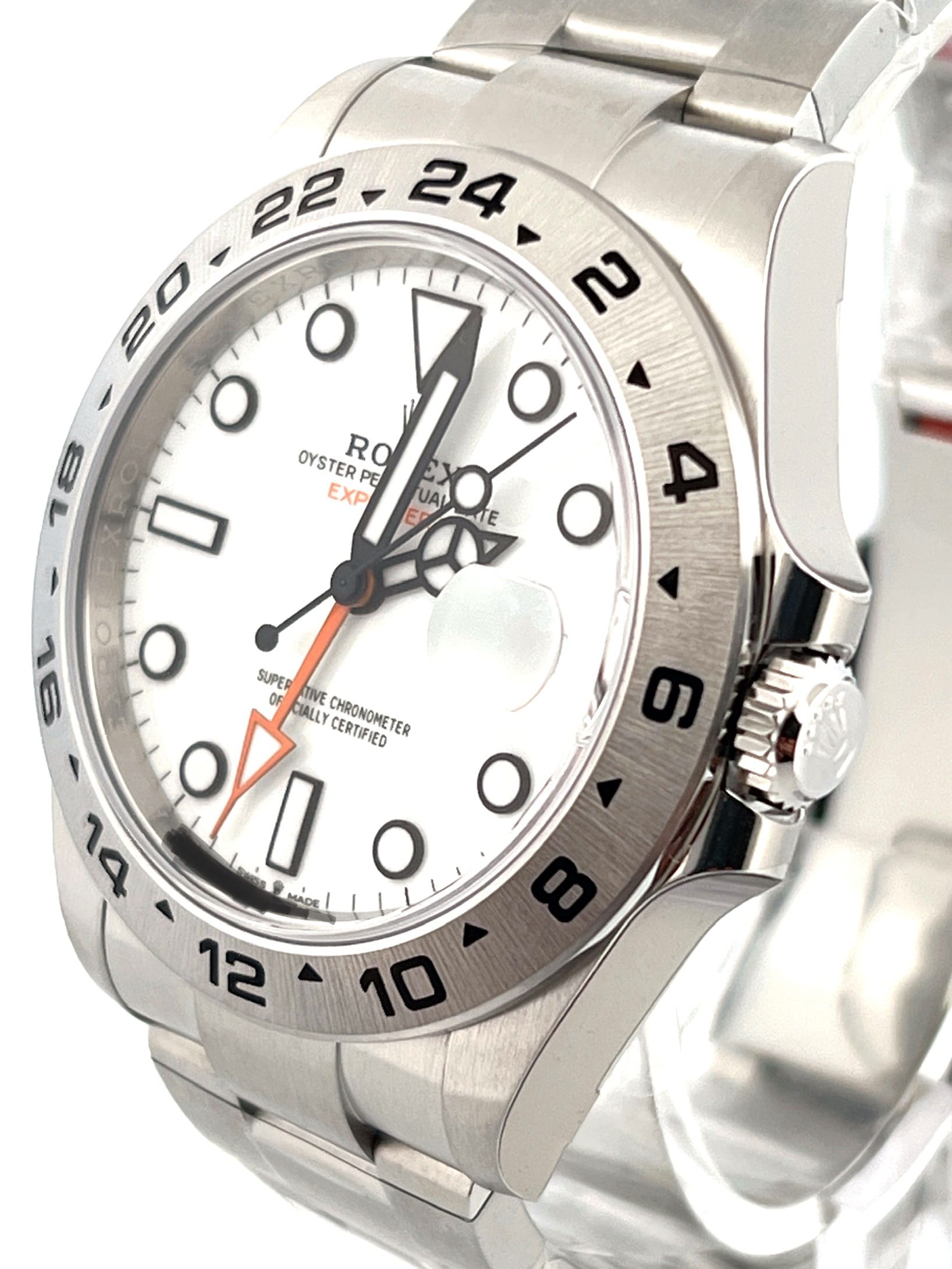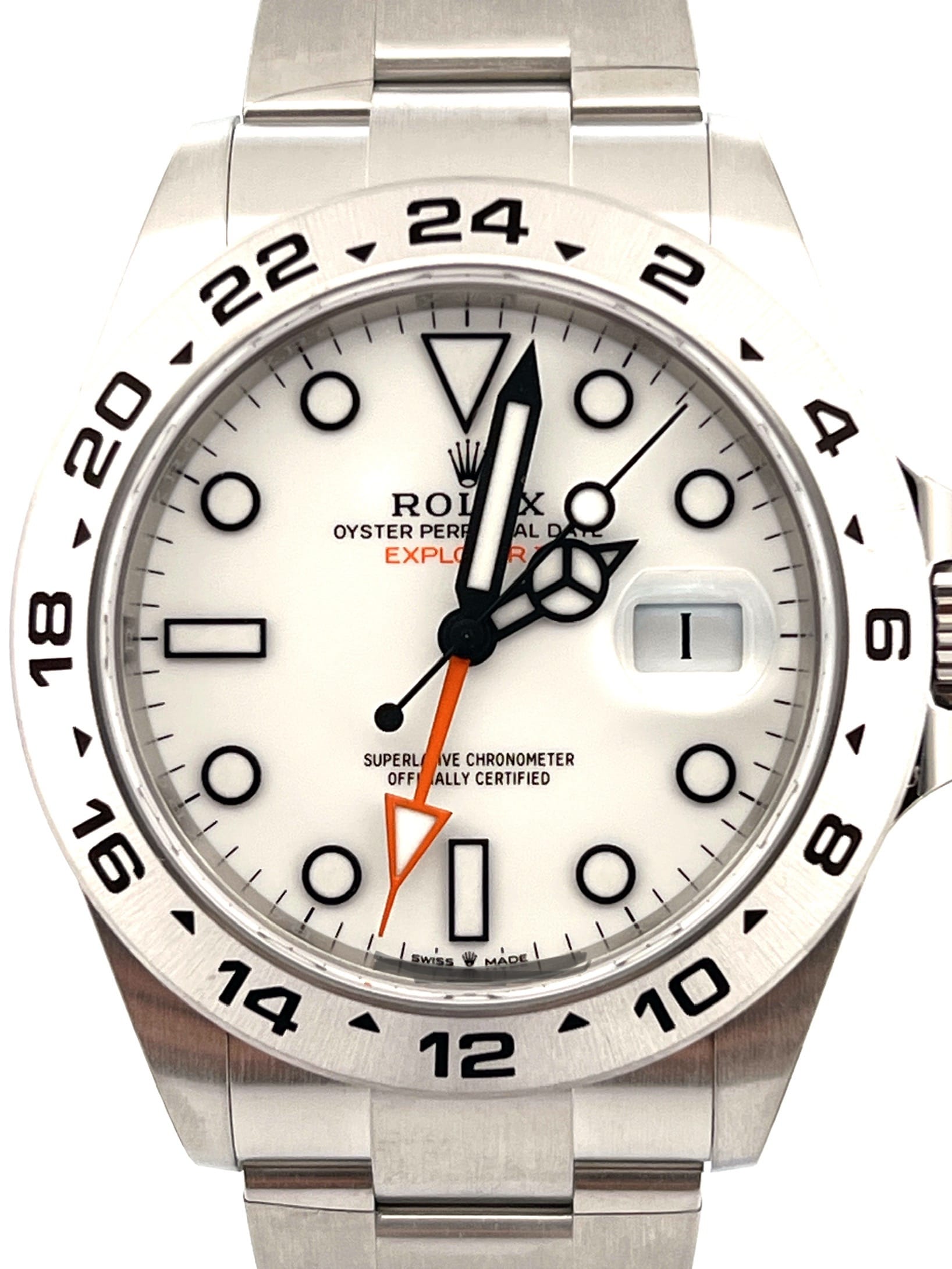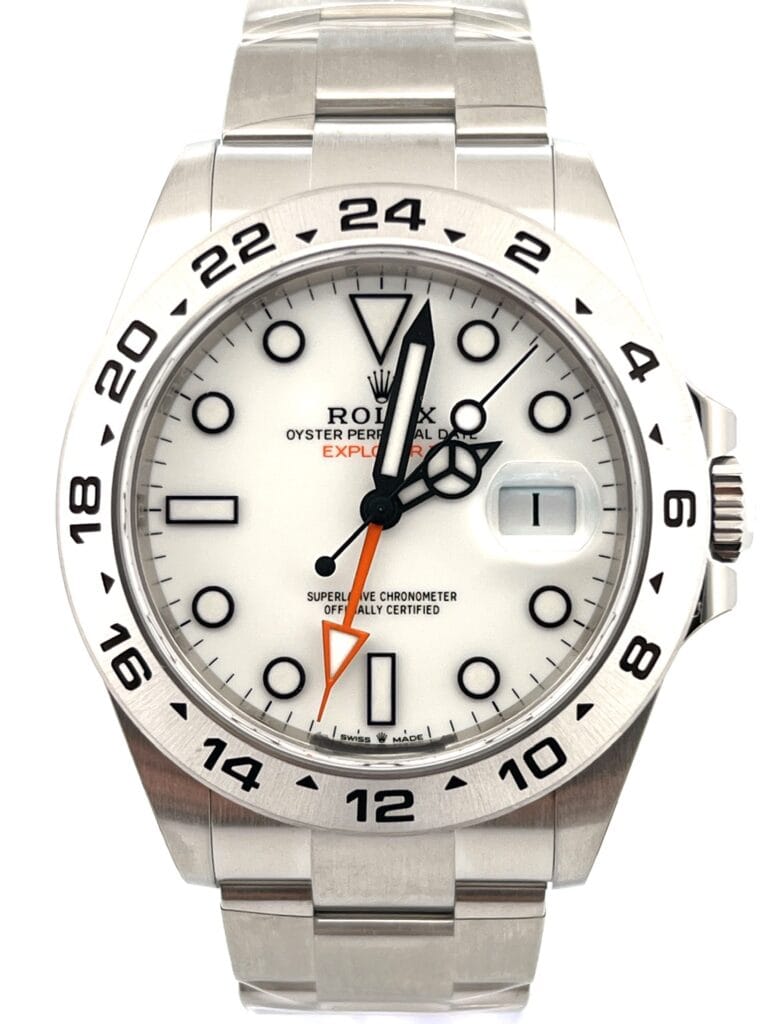 The Rolex Explorer II (Ref. 226570) with the white “Polar” dial is a watch that embraces the extremes. Built for adventurers who navigate the world’s most remote and unforgiving environments—cave explorers, polar researchers, and mountaineers—it is a tool watch in the truest Rolex tradition, but updated for the modern era.