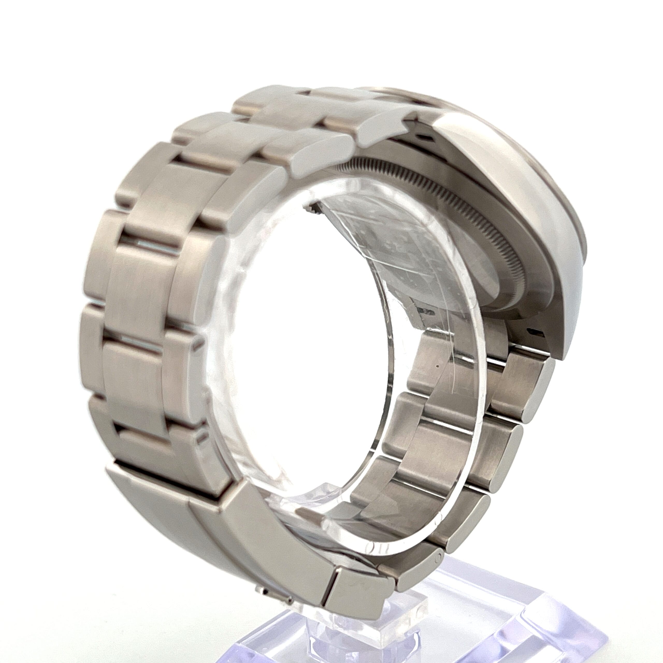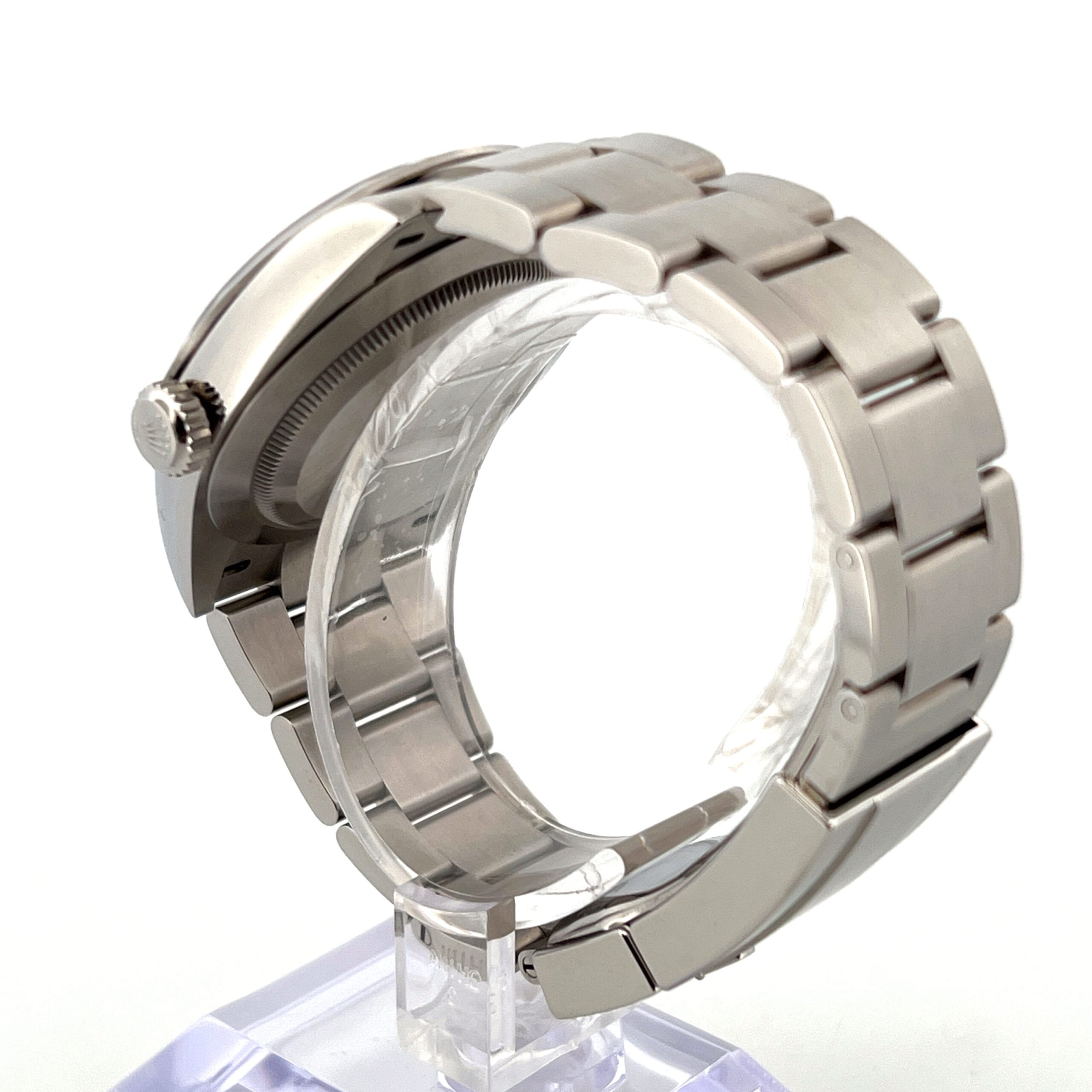 Crafted from Oystersteel, the case is lean, compact, and supremely wearable, yet still carries the solidity and presence Rolex is known for. Brushed surfaces and polished accents create a clean, understated finish, while the smooth bezel reinforces its utilitarian character. On the wrist, the 36mm sizing feels intentional—precise, agile, and timeless.