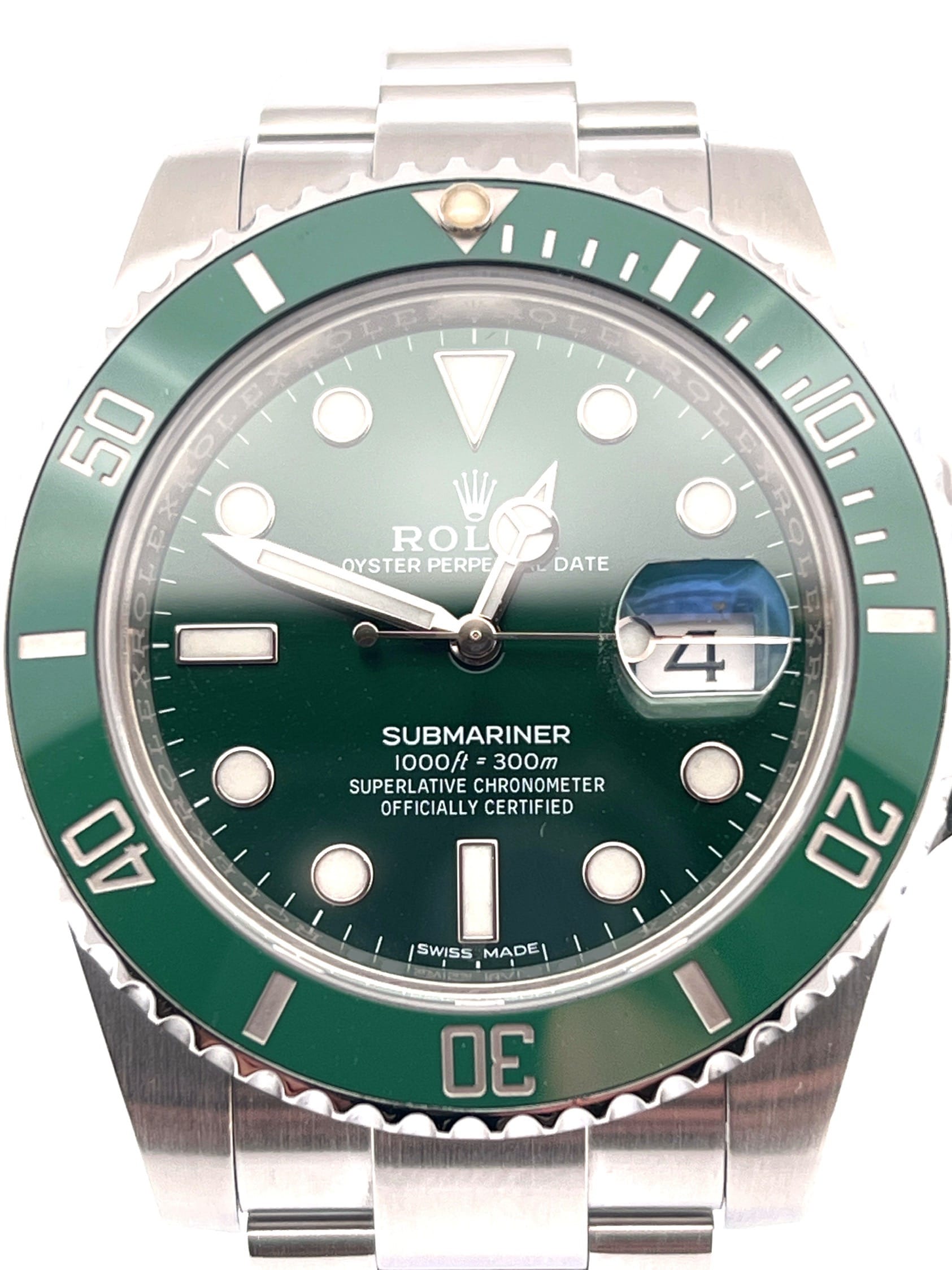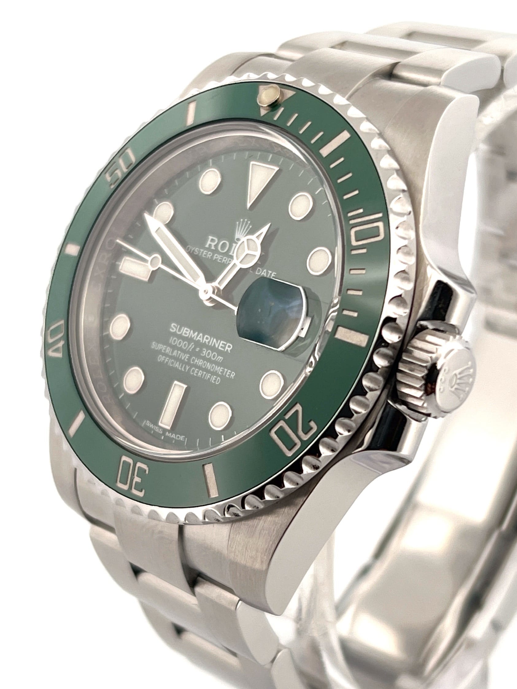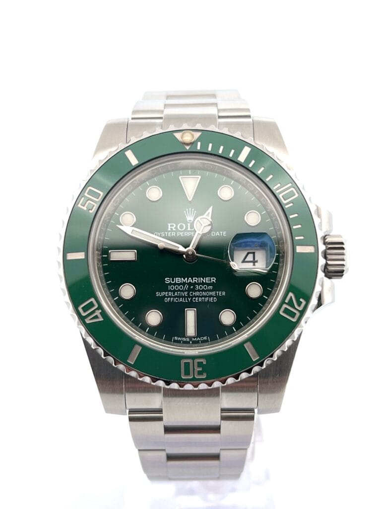 What truly defines the 116610LV is the dial-and-bezel combination. Unlike the earlier Kermit, which paired a black dial with a green bezel, the Hulk went all-in with green — bold, reflective, and highly distinctive. The sunburst dial shifts dramatically under light, giving the watch multiple personalities depending on conditions.