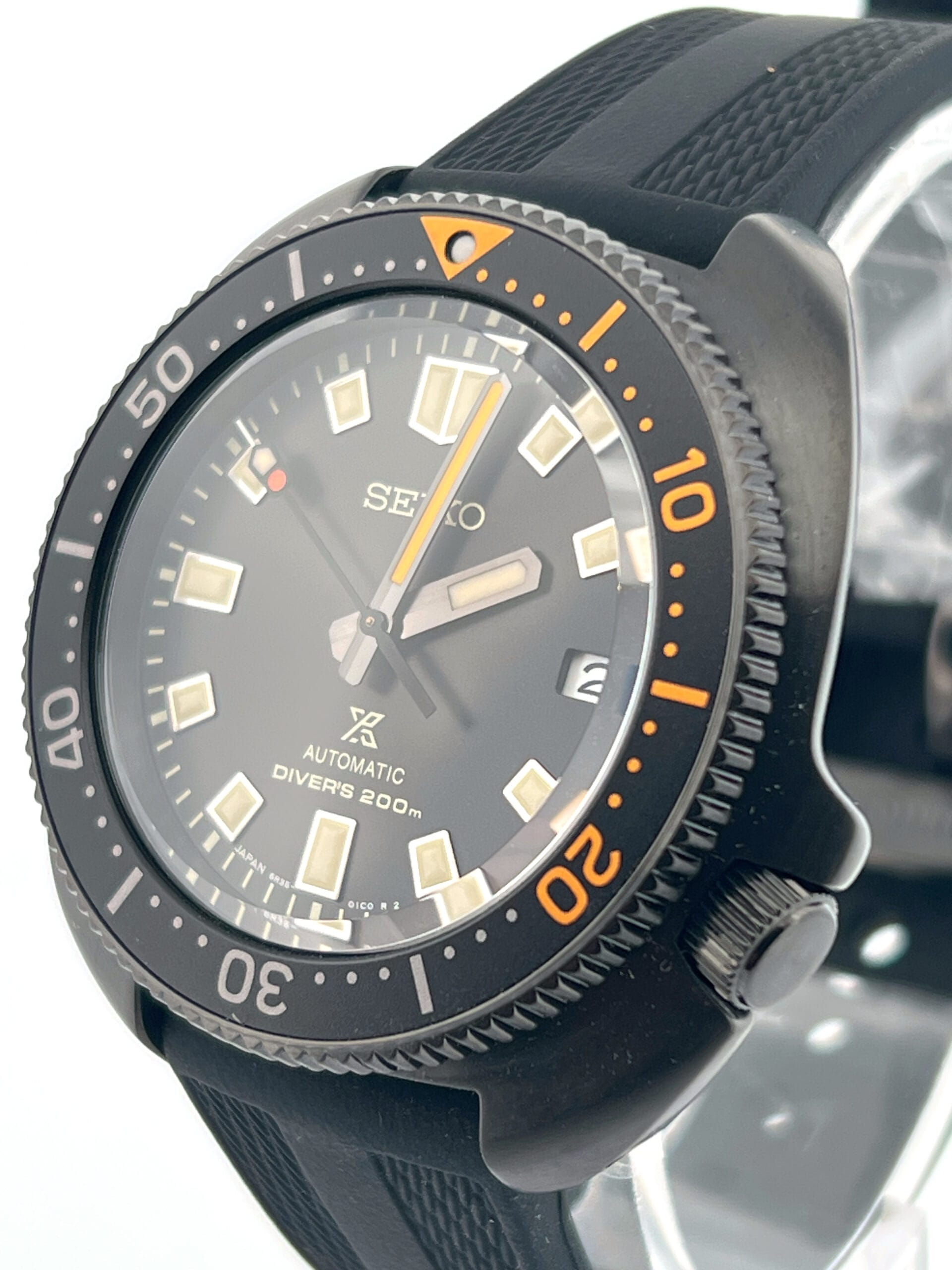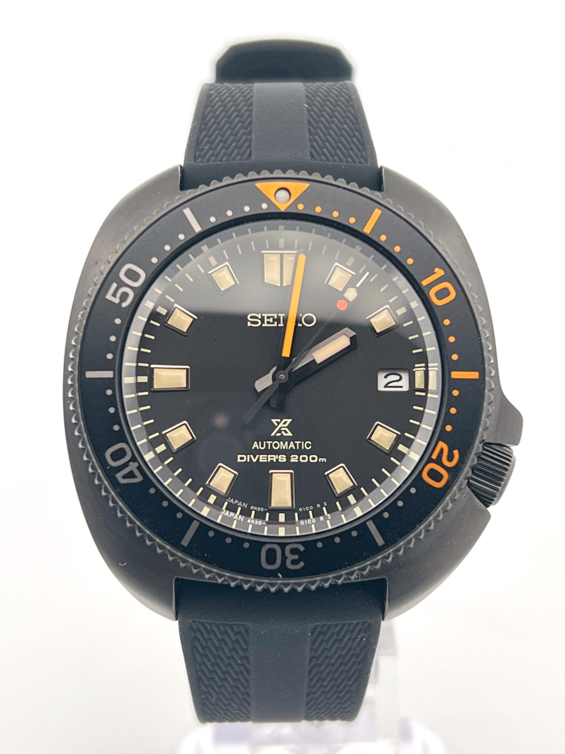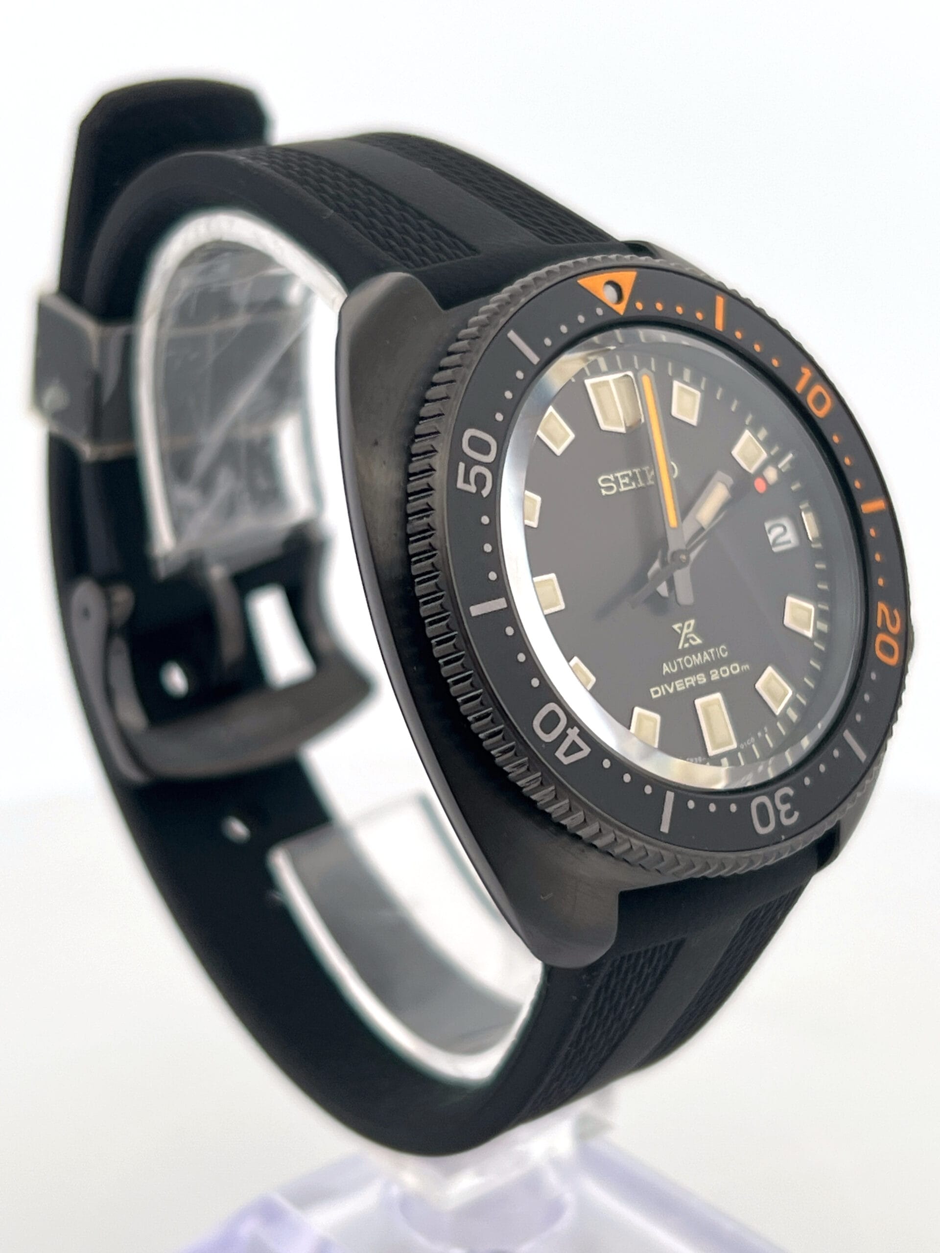 In early 2022, Seiko expanded its enigmatic “Black Series” trilogy with the launch of the SPB257, a moody tribute to its legendary 1970 Willard diver’s watch. Inspired by the original model worn by adventurer Naomi Uemura during his solo Arctic expedition, this reinterpretation echoed the original’s flowing, asymmetrical case while evolving it with a matte black hard‑coated stainless steel finish that evokes the silence and mystery of night diving. Offered in a strictly numbered series of 5,500 pieces, each watch features a deep black dial textured like rippling seafloor sand, punctuated by vibrant orange accents on the stop‑light seconds hand and the “Diver’s 200 M” text, reminiscent of torchlight piercing the ocean dark