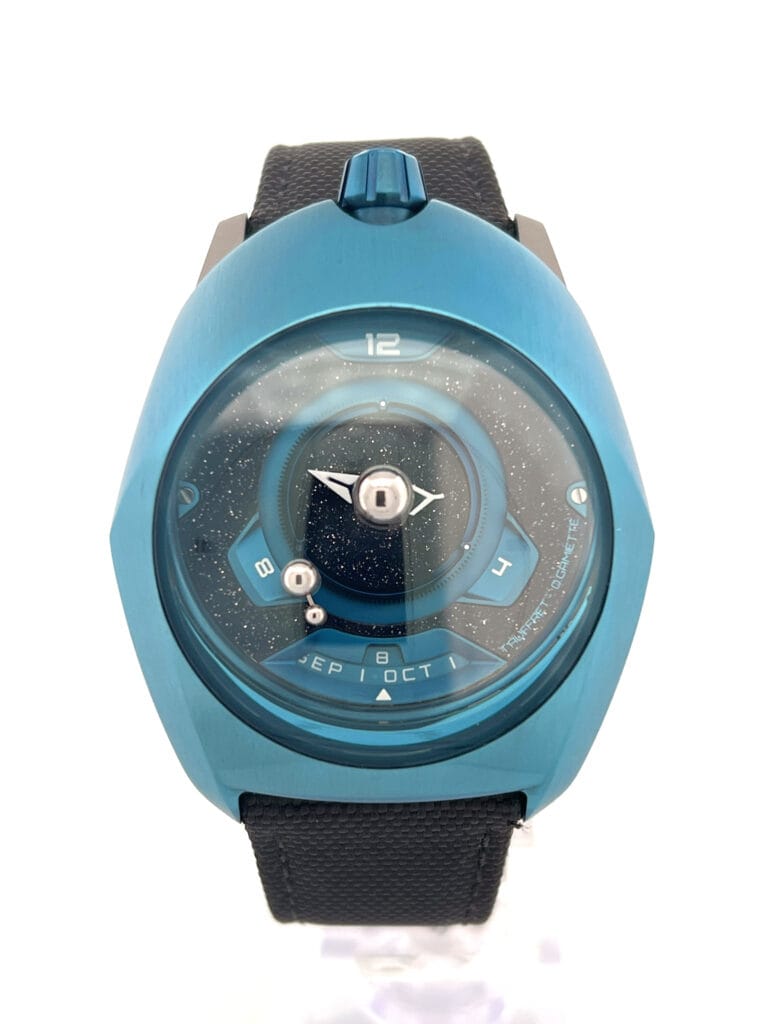 Water-resistant to 30 meters, and fitted with a textile strap and titanium buckle, the Tellurium is designed more as an artful statement than a tool watch. Collectors are drawn to this reference for its rare astronomical complication, avant-garde design, and independent origin. Combining modern materials, refined craftsmanship, and a cosmic narrative, the SpaceOne Blue Titanium Tellurium stands as a distinctive expression of mechanical imagination and horological artistry.