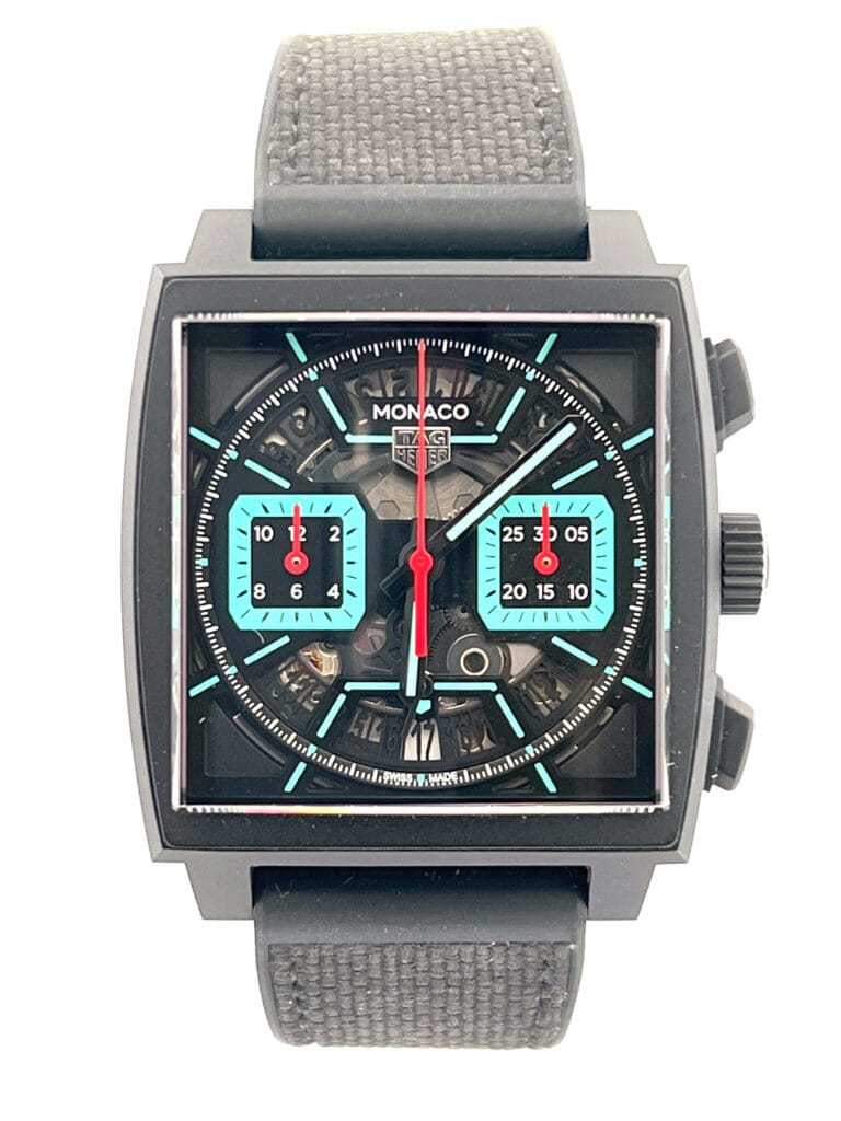 From a collector’s viewpoint, this Monaco offers several compelling attributes: it’s part of a celebrated model lineage (watch-fans know the Monaco’s link with racing and pop-culture icons). It combines high-end features — in-house movement, advanced materials (titanium & DLC) and a bold yet refined aesthetic. Its limited-or-special-edition styling (turquoise accent version) also gives it an edge among collectors who appreciate something beyond the “standard” variant.