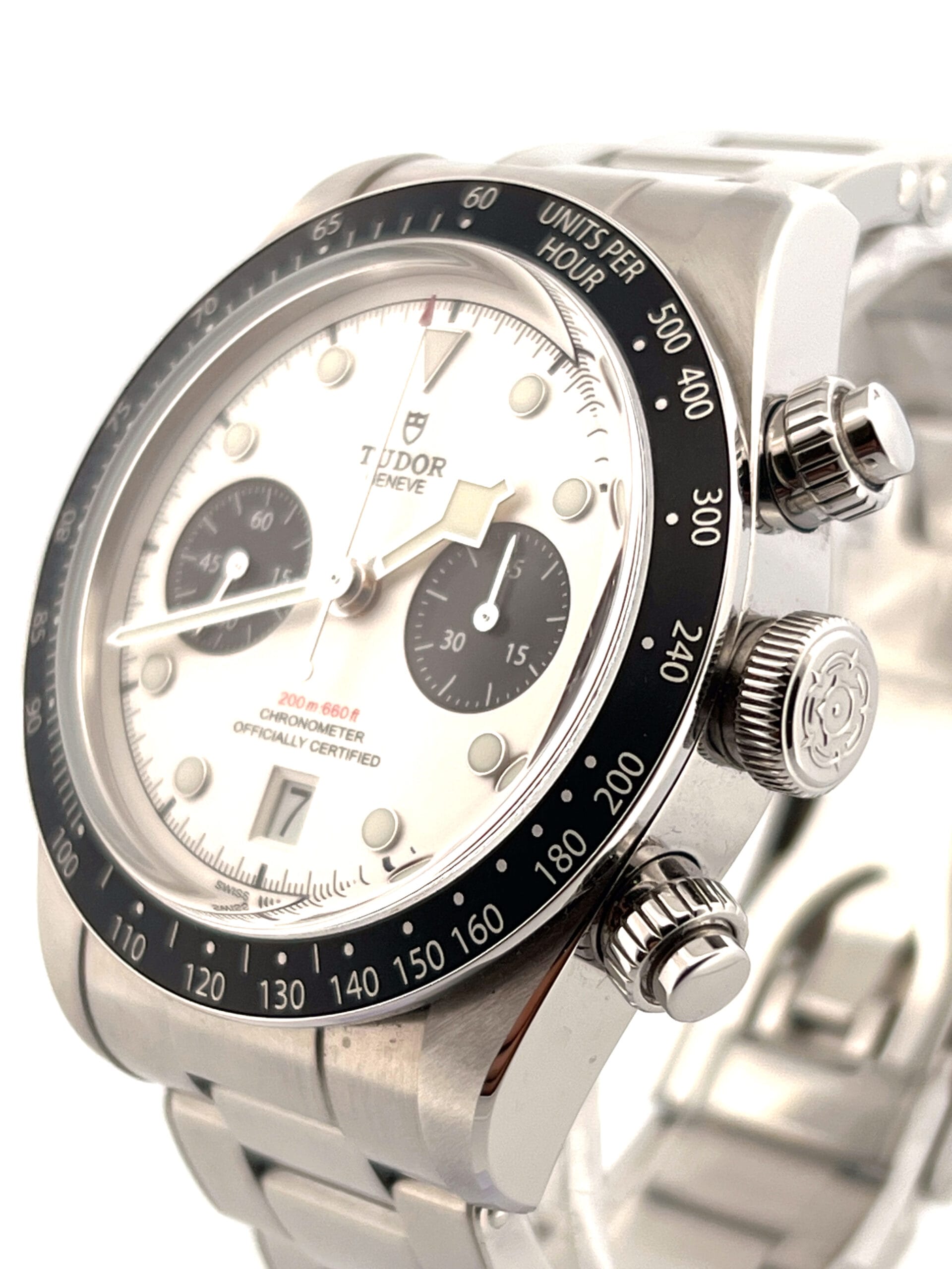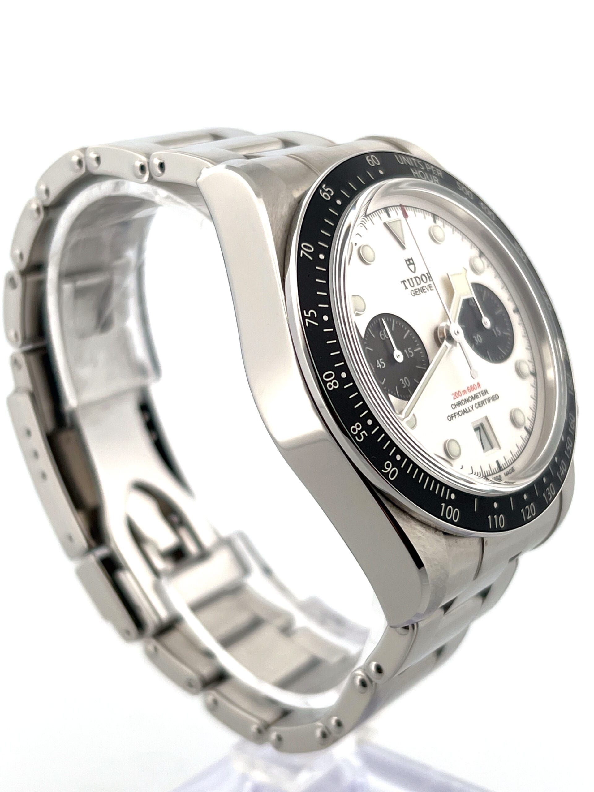 Built on Tudor’s racing-inspired heritage, it merges the boldness of motorsport precision with the iconic dive-watch DNA of the Black Bay family. The 41 mm stainless steel case is both sturdy and refined—satin-brushed and polished, with a slim profile that wears comfortably yet confidently.