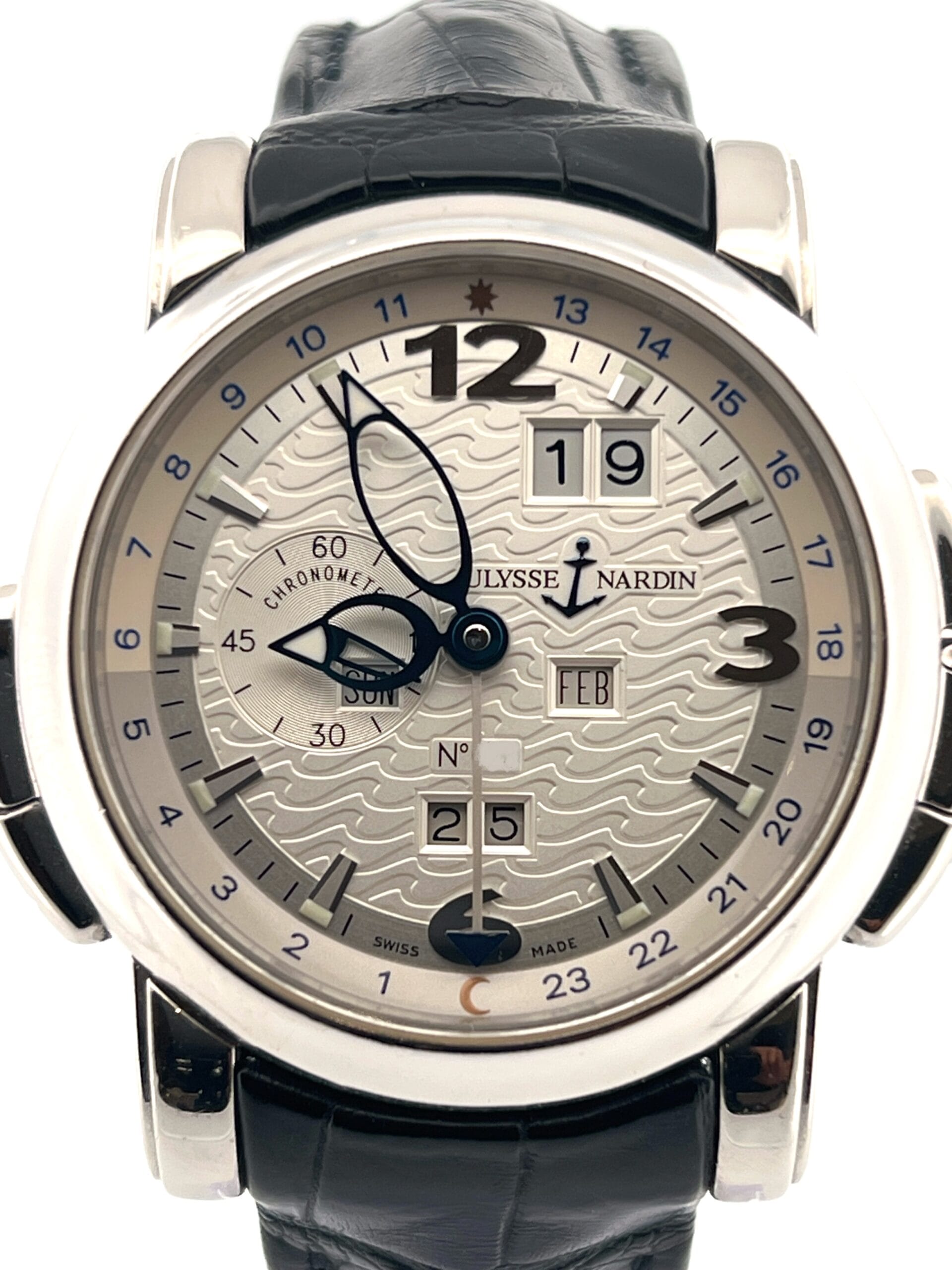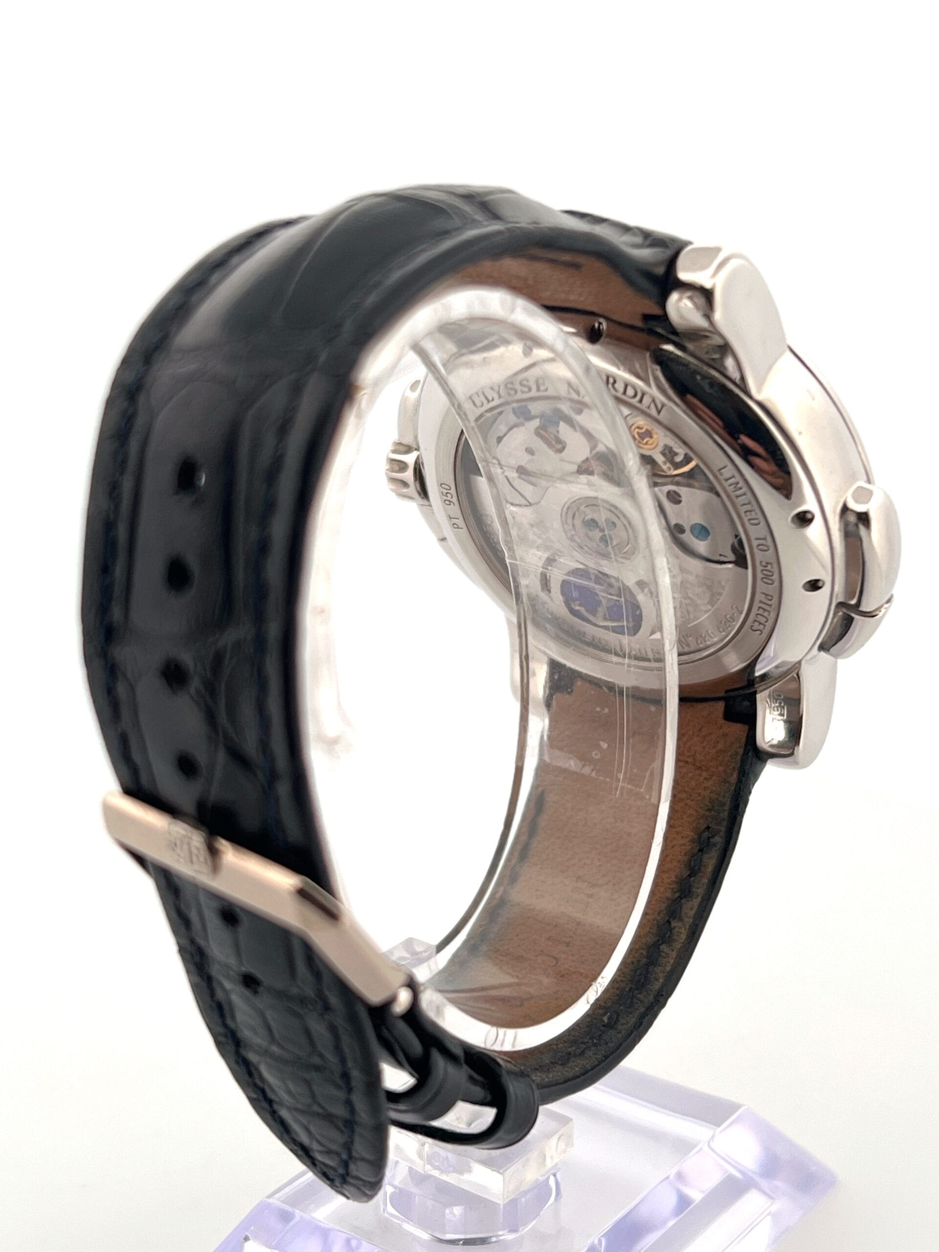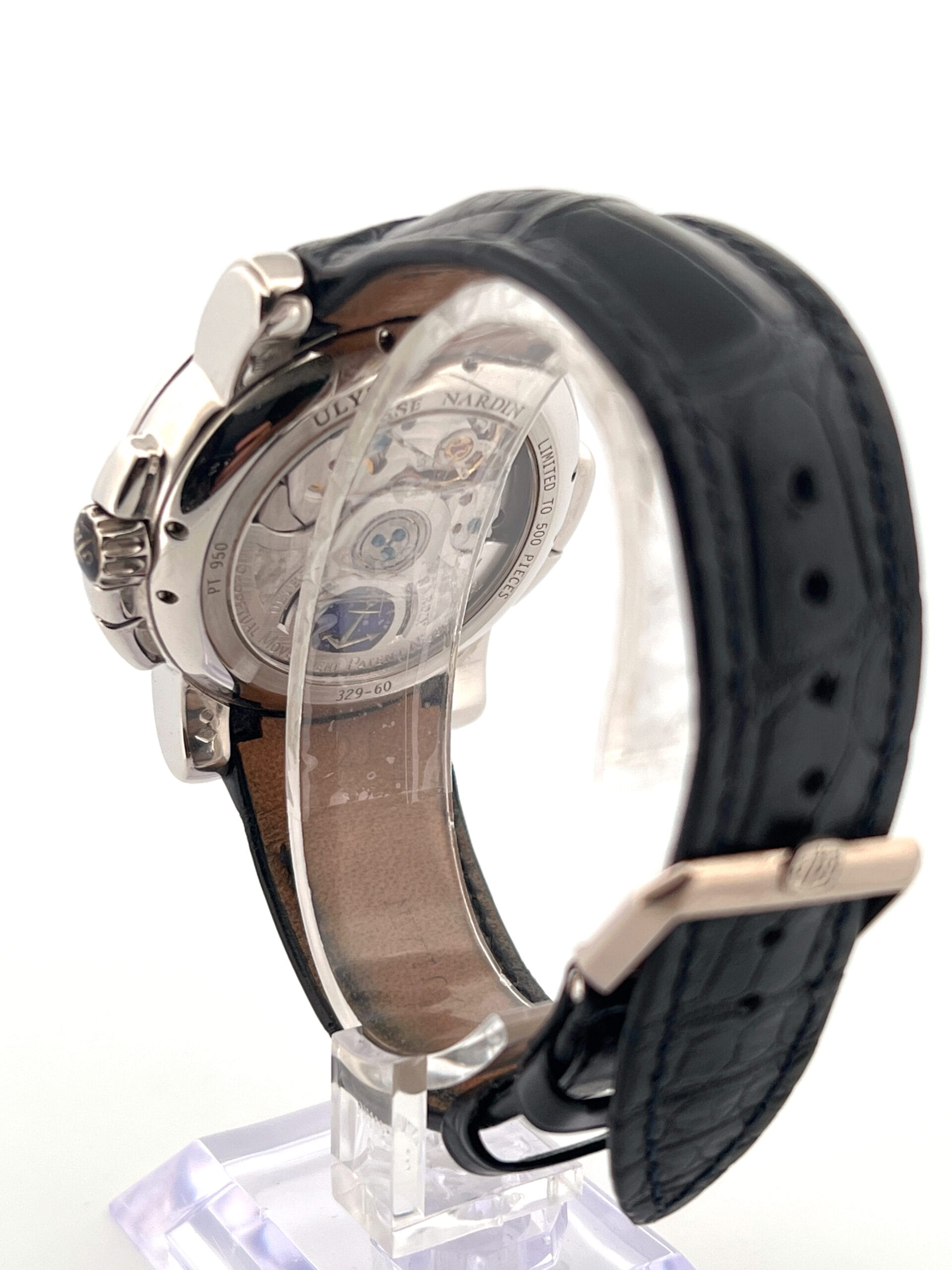 Collectors seek the 329-60 for its blend of perpetual calendar complexity with intuitive GMT adjustment, the rarity of a platinum-cased complication limited to just 500 pieces, and its distinctive mix of practicality and high-horology craftsmanship — a testament to Ulysse Nardin’s forward-thinking approach to complications.