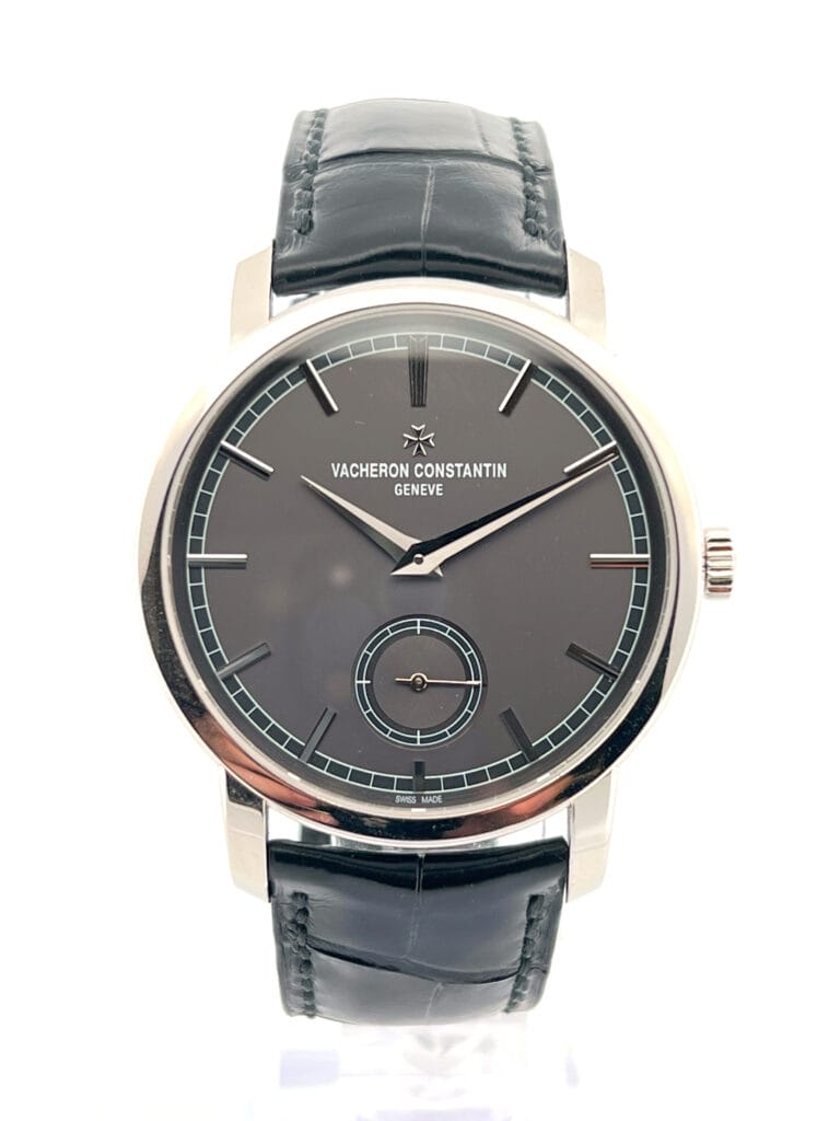 This reference reflects the traditional watchmaking philosophy of Vacheron Constantin, where restraint and finishing are allowed to speak for themselves. The Traditionnelle collection draws inspiration from mid-century dress watches, combining timeless case proportions with modern manufacture watchmaking. Inside sits the hand-wound calibre 4400 AS, a movement developed to emphasise clarity, precision, and traditional finishing rather than technical spectacle. Paired with the platinum case, the dark grey dial introduces a slightly contemporary character while preserving the classical identity that the Traditionnelle collection represents.
